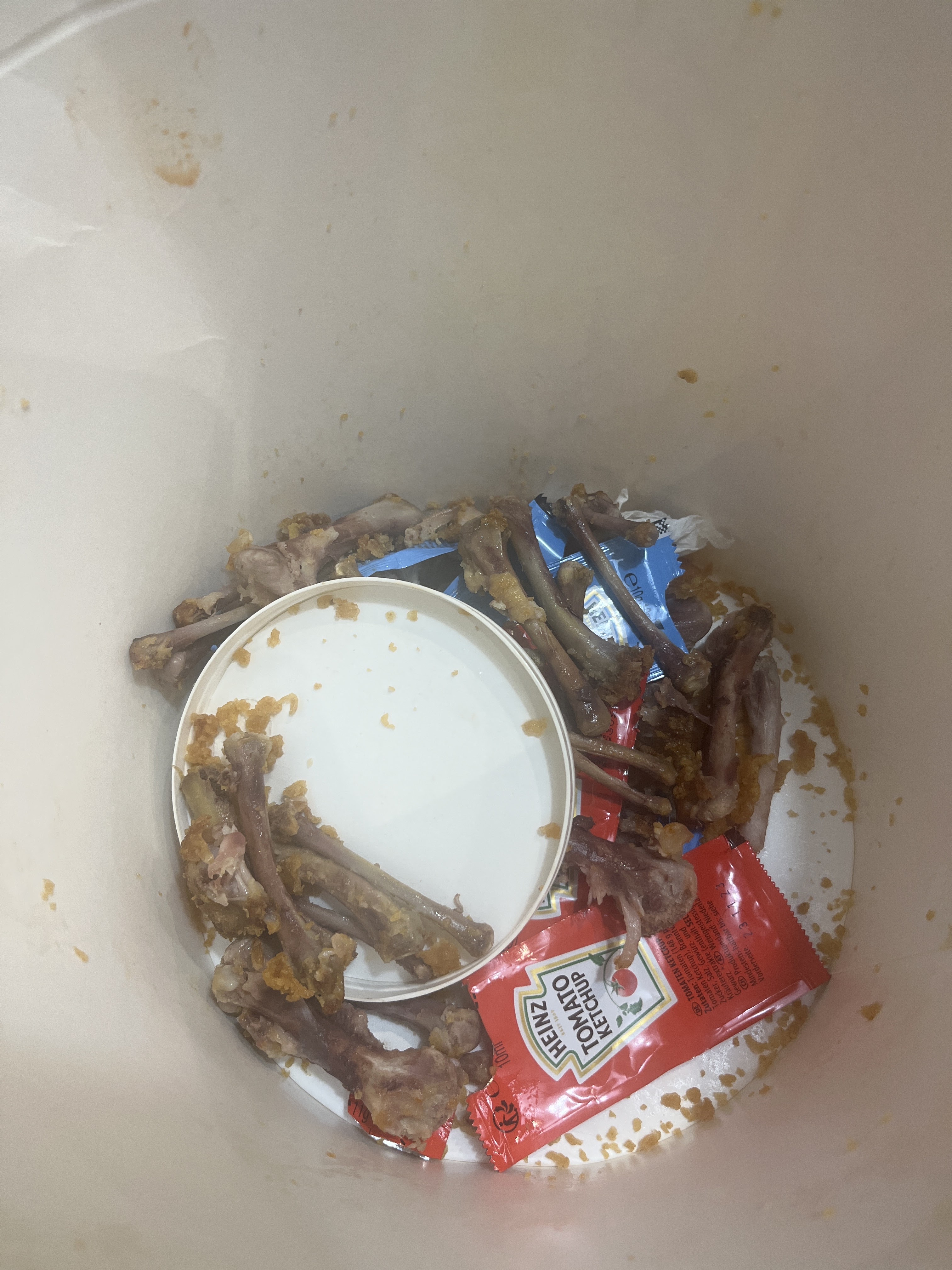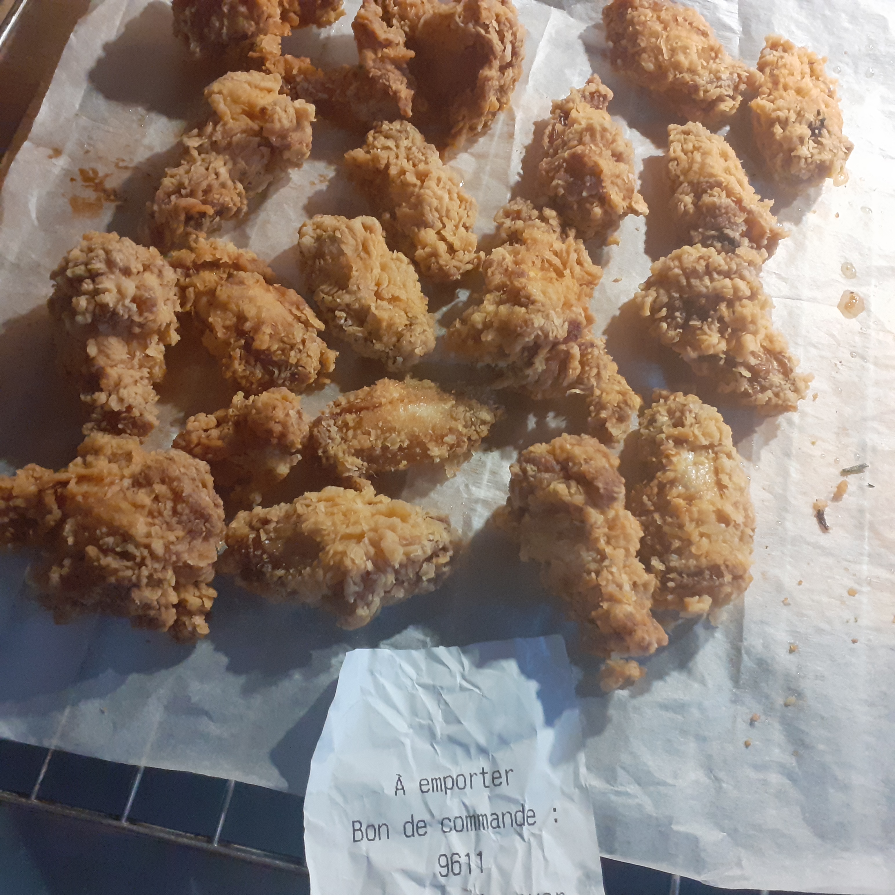 Y’aillant régler à la borne et surement à cause récurent je n’ai pu m’identifier pour obtenir des points de fidélité. J’ai fait mention de cela à la caisse et elle m’a répondu juste un « t’en pis ». Dans l’attente de notre commande je suis allée aux toilettes et comme d’habitude, une queue interminable, mais normale quand un seul toilette est accessible. Une fois arrivée à la maison, surprise sur la taille des morceaux de poulets, on a pris un mix de 16x16, ils ont diminué de moitié voir plus 😭😭😭. Tandis que le pris lui n’a pas changé. C’était un restaurant préféré pour le poulet , là je suis juste déçu 😞