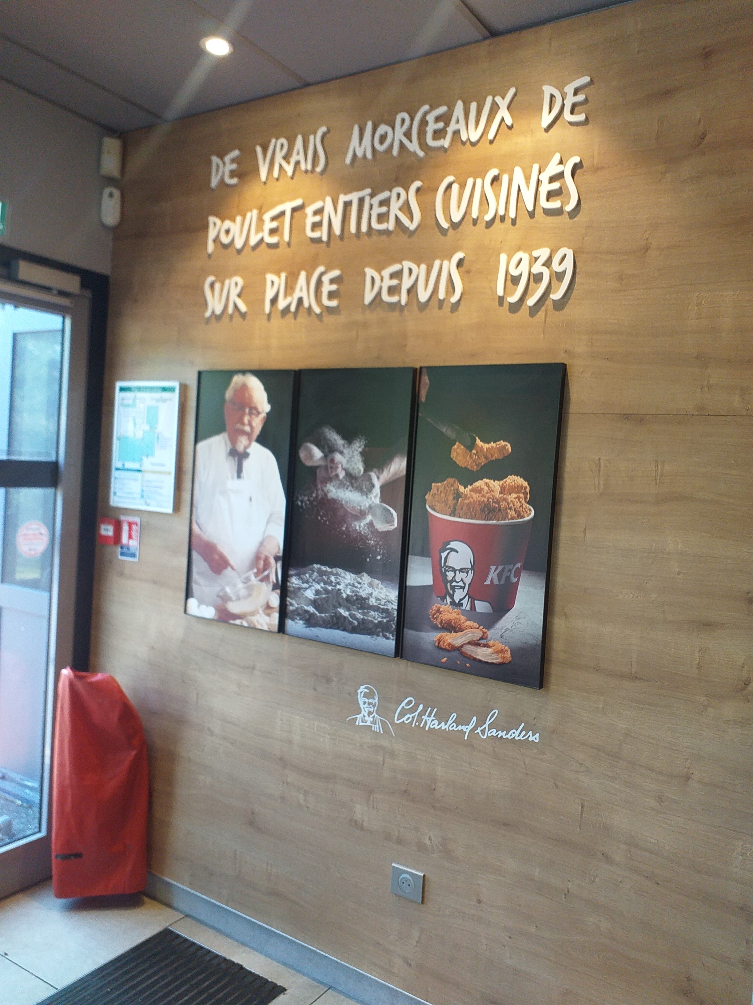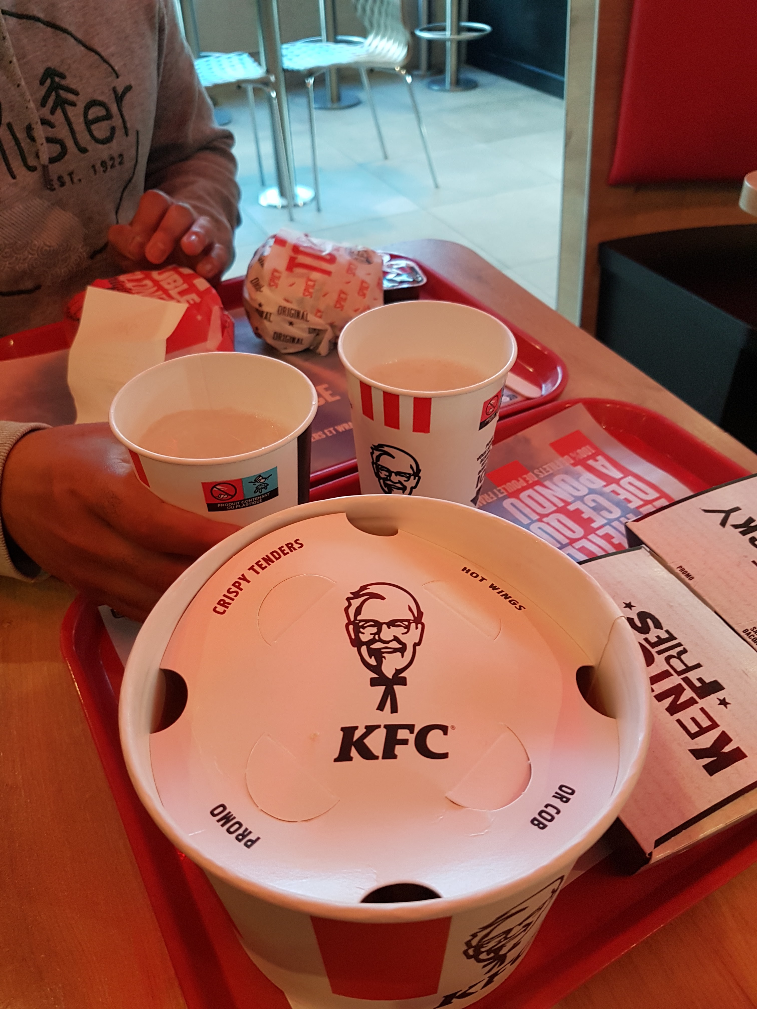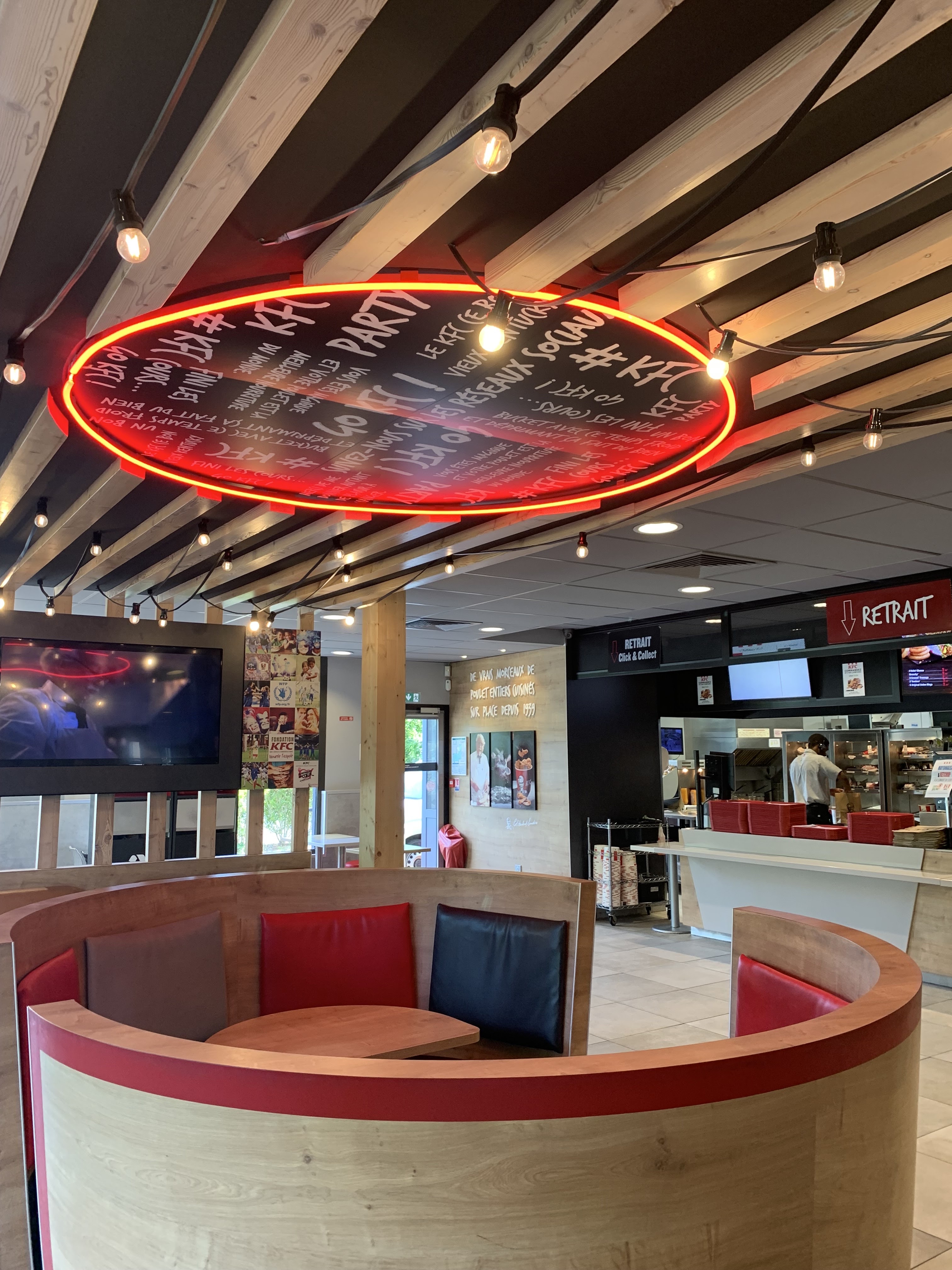 1ere fois en famille chez KFC. Lieu propre, service rapide et agréable. En rapide, les ailes de poulet, ma fille a adoré. Frites pas au niveau des concurrents, et burgers Kentucky et colonel fades, sans personnalité. Pas le lieu pour manger du Burger selon moi.