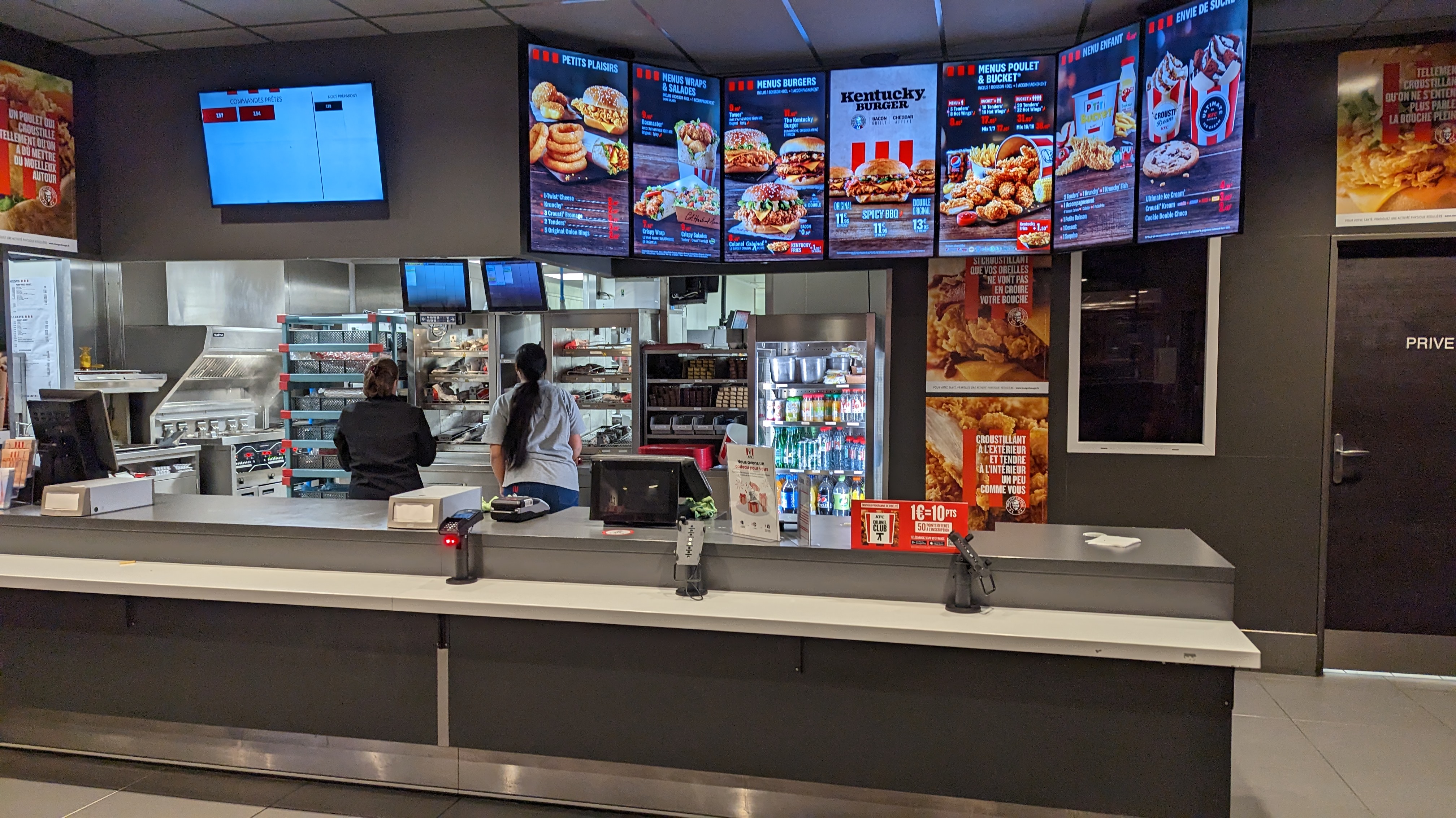 Depuis plus de deux ans on ne peut plus se resservir de boissons, on doit en racheter. De plus notre commande d'aujourd'hui ne nous a pas satisfait, le bacon des kentucky fries était trop gras et 3 sur 4 de nos burgers n'avaient presque pas de sauce