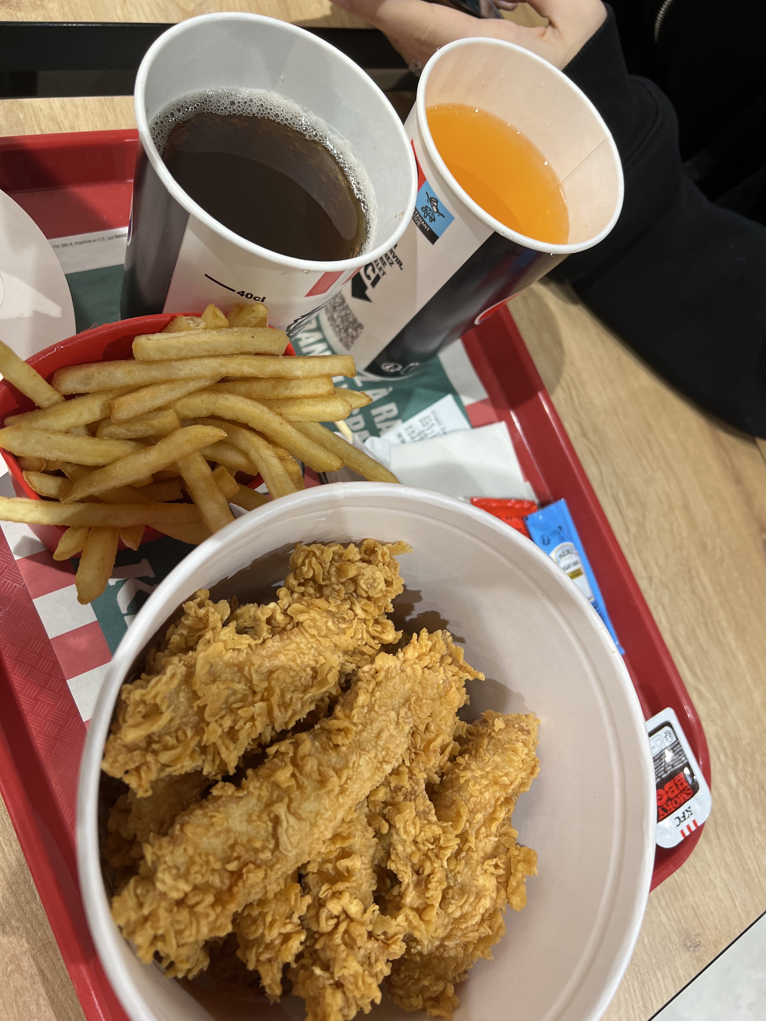 Super kfc,en plus il y’a le service à table. Les frites sont chaudes. Très ravie du service.