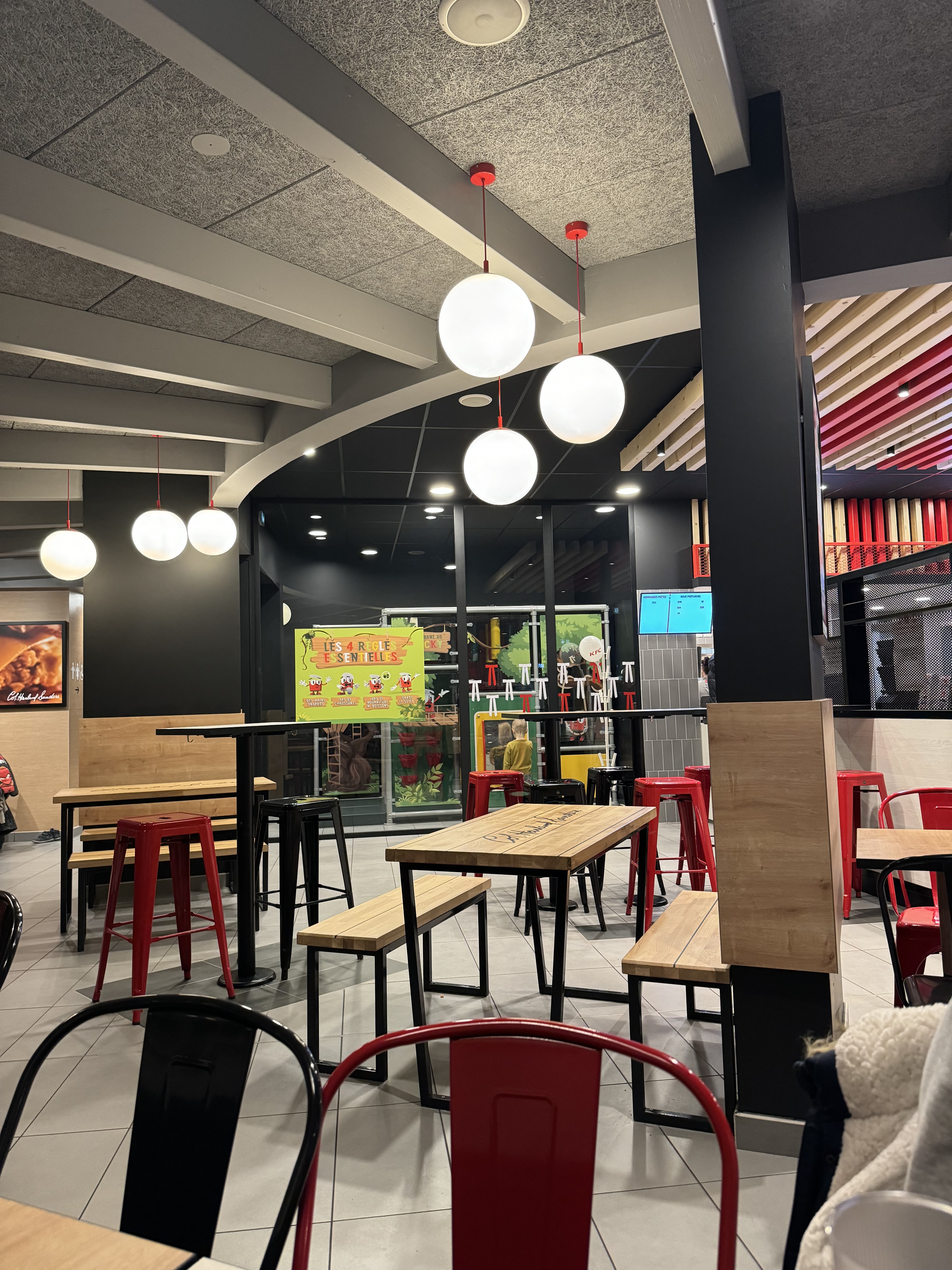 L'intérieur du nouveau KFC est très sympa sans parler du personnel qui est très accueillant et aux petits soins pour ses clients. Je le recommande. TOP