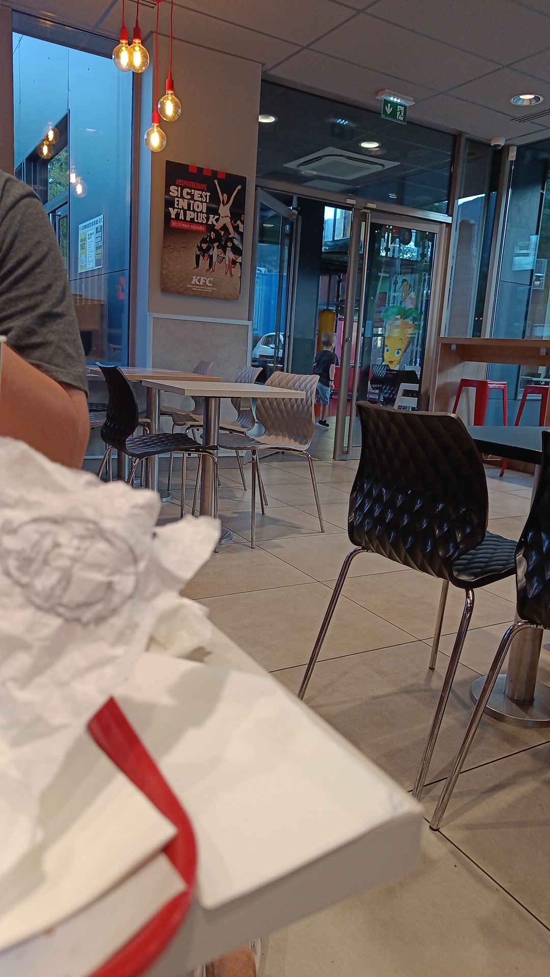 Arrivé un samedi soir à 21h40 à deux, les employés sont désagréables et ne sont pas accueillants. Pire encore dès 22h une employée se met à ranger les chaises sur les tables à seulement une place de nous (photos à l’appui), alors que le restaurant fermait à 23h ce soir la !!! c’est vraiment très désagréable, l’impression que nous dérangeons. Je fréquentais souvent ce KFC et bien c’est terminé je ne recommande pas du tout …