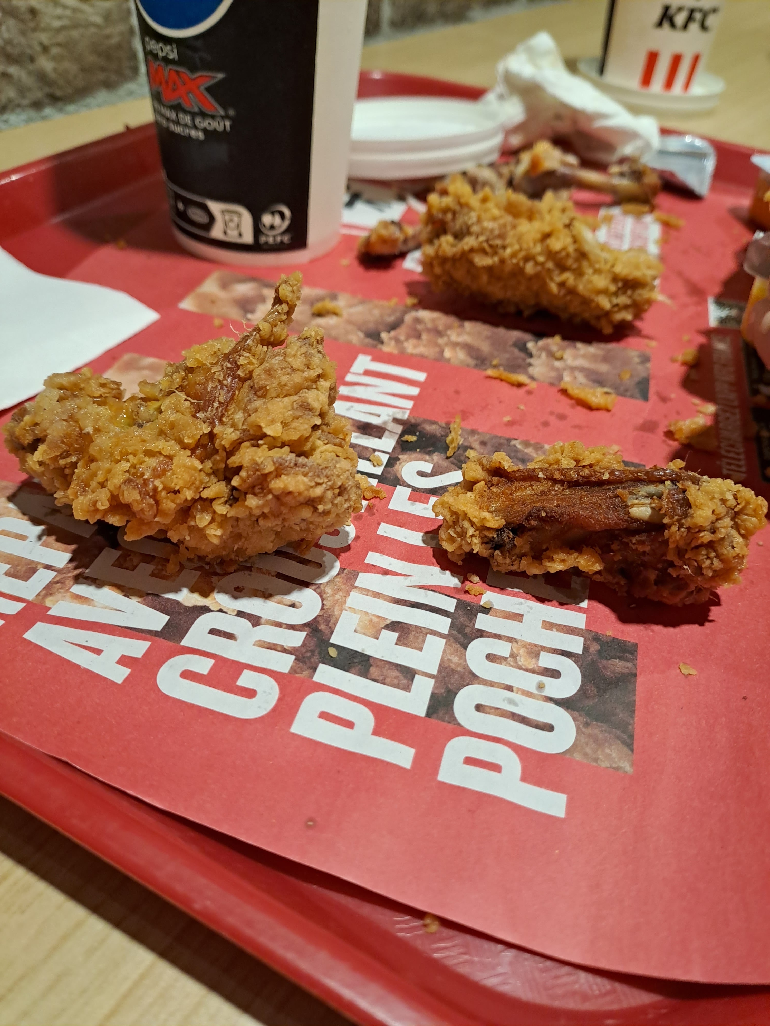 C'est un très bon KFC et même l'un des meilleurs où on puisse trouver des hot wings croustillants avec une bonne chapelure et qui ne soient pas cramés ni réchauffés. Le personnel est souriant et au service du client. Les locaux sont propres et il y a même une terrasse à l'étage. Je recommande sans hésiter.