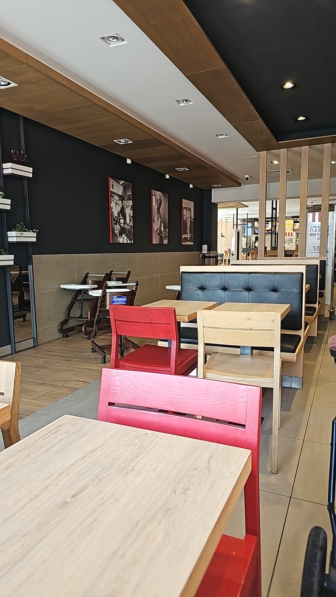 2 étoiles car j'aime le poulet. Arrivé a 21h30 et déjà toutes les chaises sur les tables. Donc par drive :file d'attente de 25mn minimum . Restauration rapide :que le nom Dommage