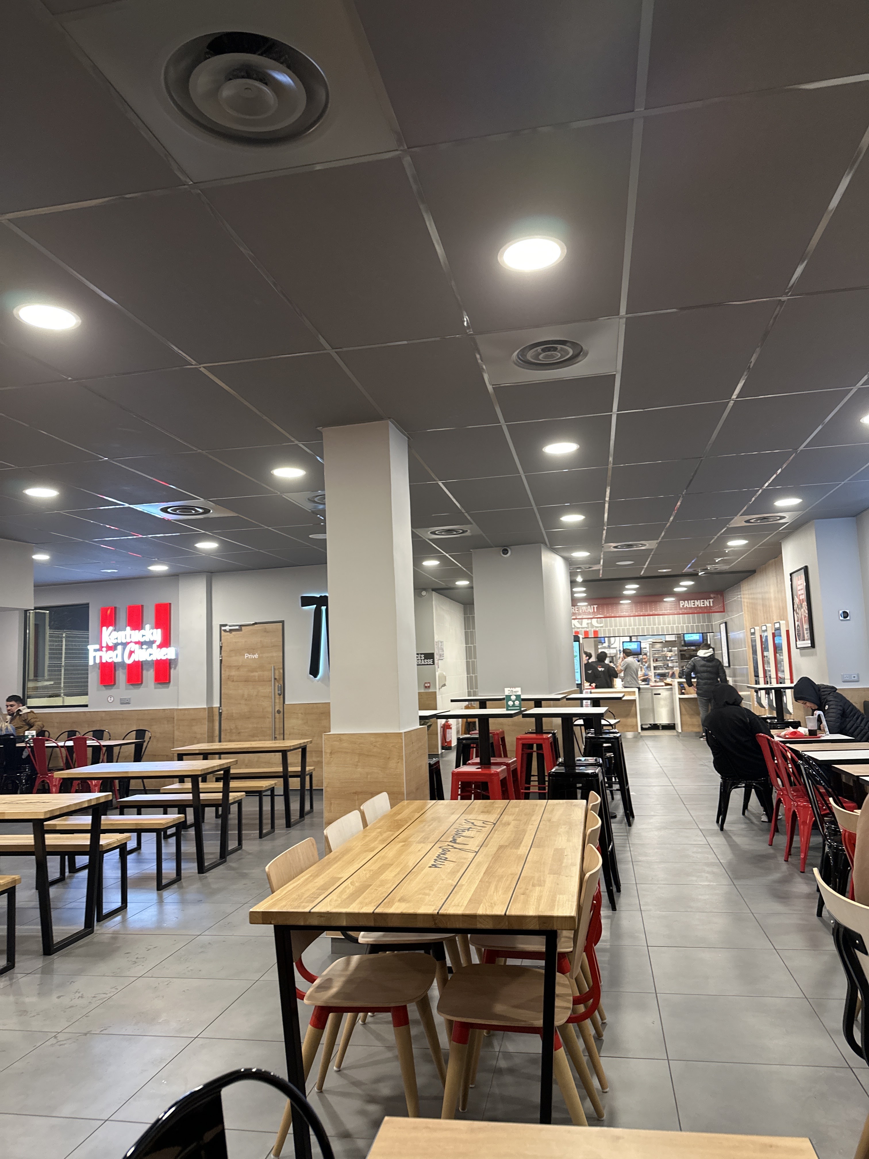 J’aime ce kfc psk il est bien placé et qu’il est jamais bondé donc pas du tout oppressant + le staff est vachement plus disponible