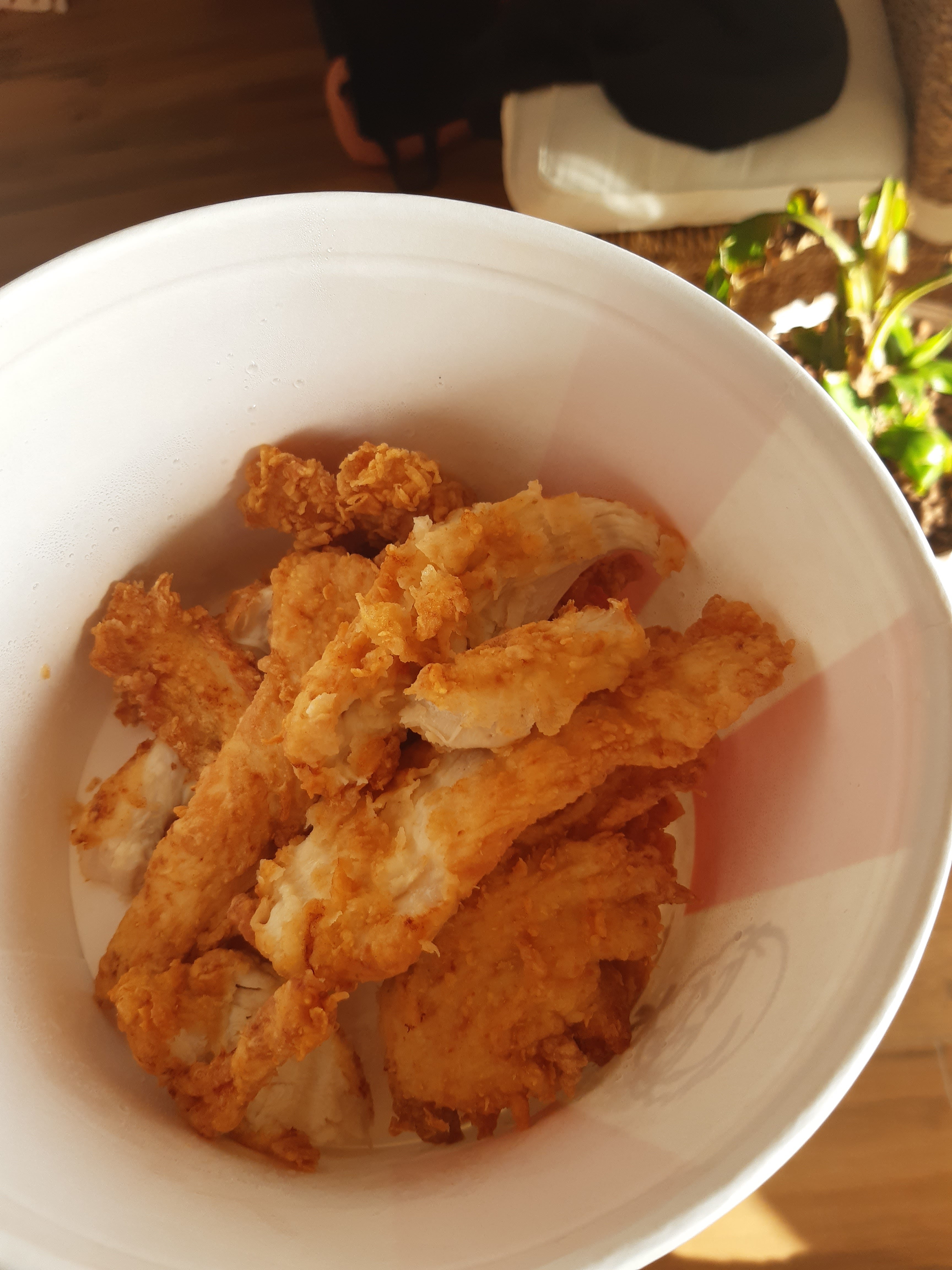 Le poulet était très sec et après mon passage a KFC j’avais très mal au ventre .