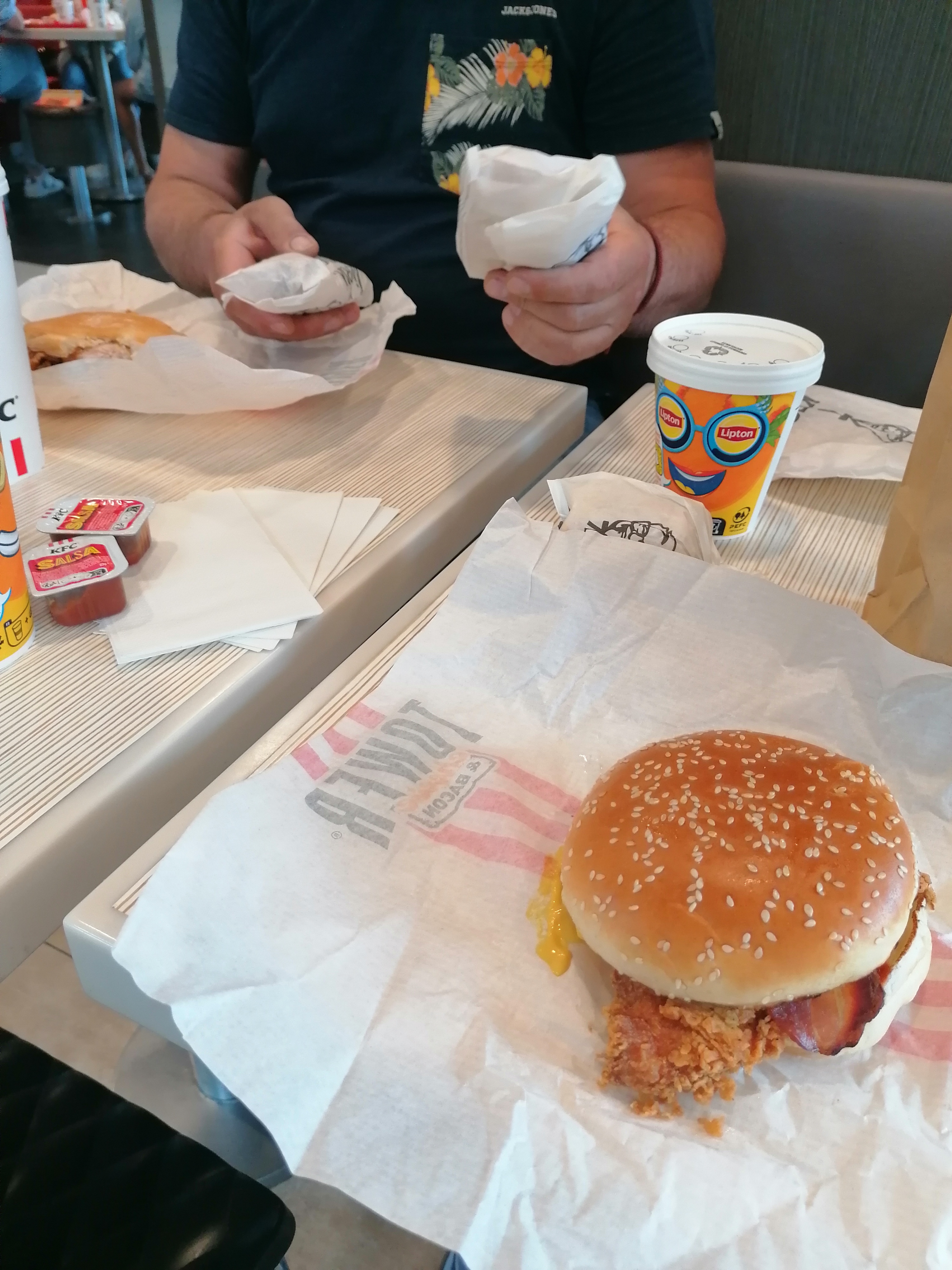 Bonsoir je viens de finir mon repas dans ma voiture devant votre restaurant. Étant presser je ne suis pas venu me pleindre directement mais j' aurais du .. a peine commander tous de suite servie . Au Top mais la qualité n est pas au RDV. Boisson plate a croire qu elle est préparer 2h avant. Frite froide.. Et le pire les burger .. j ai pris 2 tower. Super chaud donc sa me va mais vu l état de la salade toute flétrie ainsi le pain du bas . J aurai pu sérieusement m'en servir de biscotte. De l 'abus total. Même un robot ne pourrais pas préparer 2 towers en 20 secondes. Du coup je me doute qu'il étais préparer mais depuis quand ? Au minimum 1heure .. merci au genre de fou qui réchauffe les burgers . Quand je vois l état de la salade et du pain tous dur c'est de l'abus. Personne devant moi j ai compris pourquoi . Vraiment dégueulasse . C'est le dernière fois 🤮