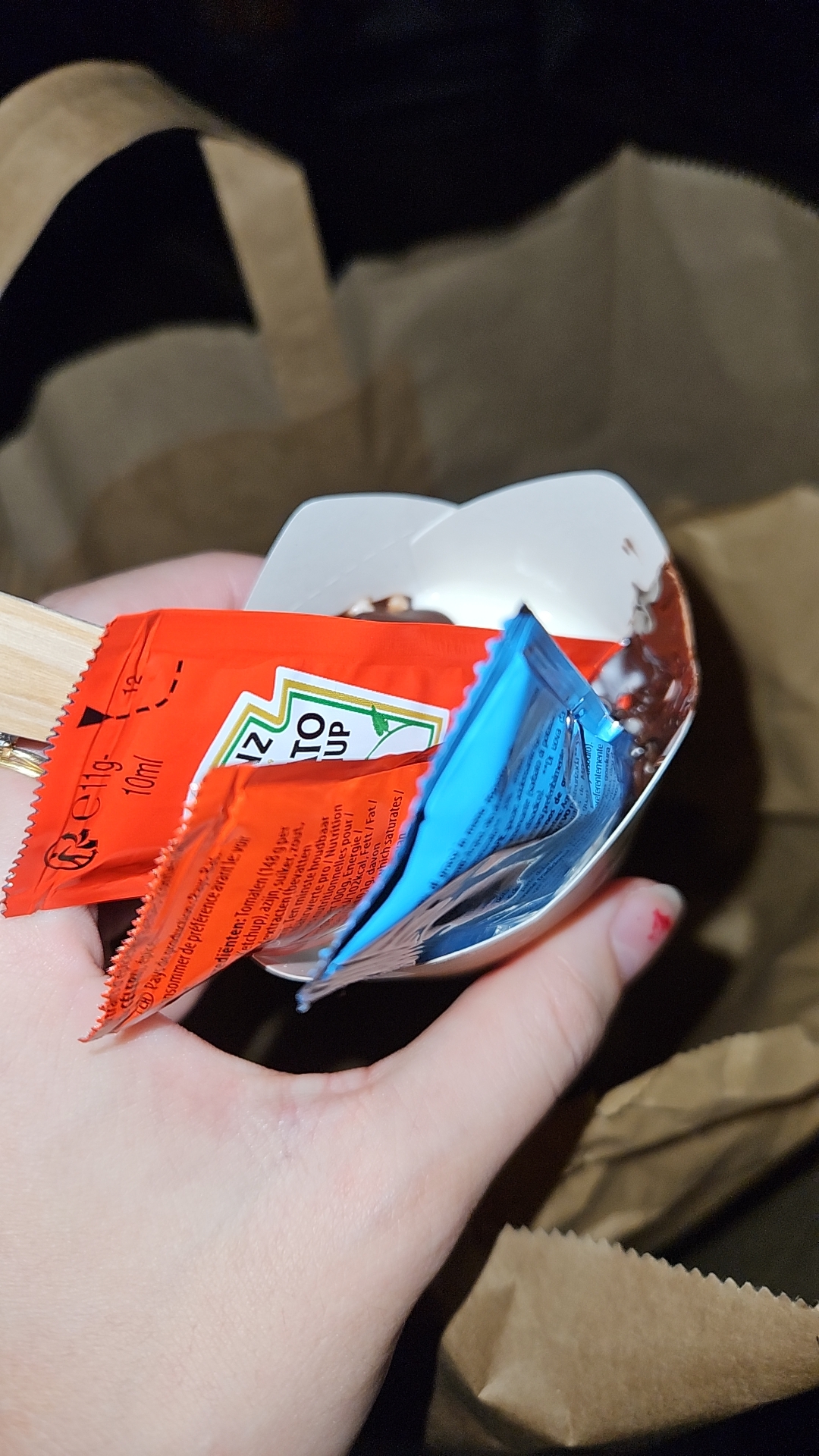 Une confusion dans ma commande et celle d'un autre client et donc une attente un peu longue mais des excuses du personnel très sympa donc tout va bien de ce côté là. On m'a également bien donné les sauces ketchup et mayo, et la commande était complète. J'ai trouvé le wrap correct, les croquettes de raclette corrects aussi. Par contre, je trouve les morceaux de bacon dans les frites un peu gras (parfois juste des morceaux de gras blanc parmis les frites). J'y retournerai mais je prendrai des frites classiques =)