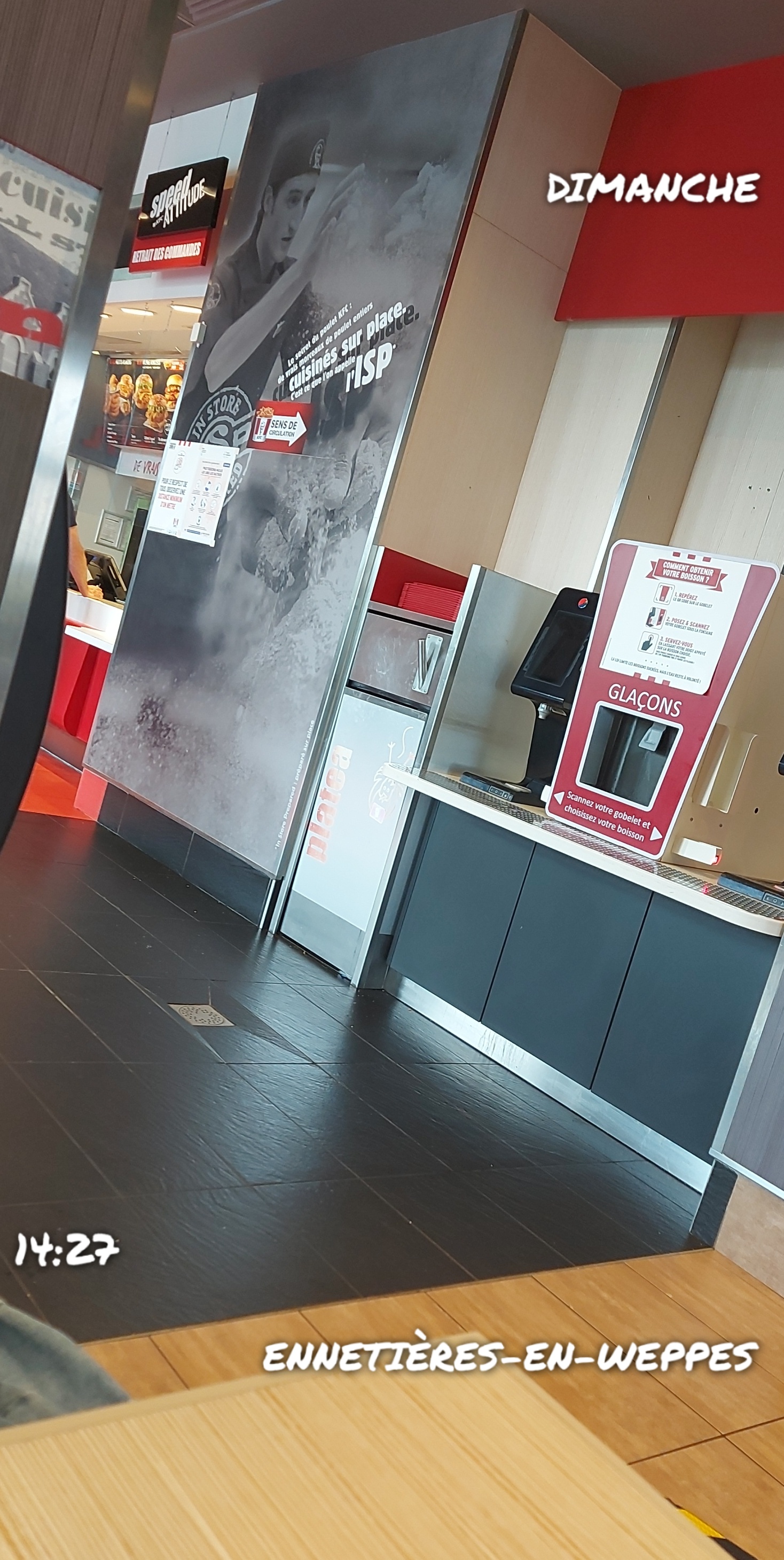 Merci mon fils était ravi, il a pu jouer dans les jeux 33 minutes, le temps que je puisse recevoir ma commande à emporter….. Mais quel horreur, que se passe t il dans ce restaurant ????? Je passe ma commande sur la borne : 12H50 Commande 9937 La commande 9932 vient d’être servie mon fils me demande s’il peut aller dans les jeux… Estimant le temps d’être servi à 5 minutes, j’accepte en le prévenant que l on va bientôt y aller …. Mais non, les clients s’accumulent, les commandes ne sortent pas. Enfin il faut dire : 1 seule vendeuse derrière le comptoir, 2 voire 3 personnes en cuisine Mon regard se pose sur l’affiche « SPEED KFC Attitude » et je ne peux m empêcher de me dire que dans speed il y a 2 « E » comme la mouche tsE-tsE qui a dû les piquer pour qu’ils soient aussi long. Alors je détourne le regard sur le sol gras qui laisse apparaître les traces de semelles de la clientèle, sur les restes de déchets alimentaires sur le sol ou sur les écrans qui ont dû être nettoyés avec la lingettes trempée dans l’huile de friture. Ouf le cuisinier vient de finir de sortir le poulet sous vide. Oups mais que vois-je, il n’a pas de gants. Ha, il vient tout de même aider la seule serveuse, il lui prépare les boissons qu’il amoncelle sur le comptoir. Oups il repart en cuisine sans gants et revient aider sans se laver les mains !!!! Mince il n aide pas vraiment car les voilas qu’ils ouvrent chaque gobelets avant les commandes pour vérifier leurs contenus ( Mais laissez les ouverts 🤬🤬ça ira plus vite) Bon 25 minutes que j attends, le gamin s’amuse toujours dans les jeux, heureusement, il a eu le temps de raconter 6 fois ses vacances à ses copains d un jour!! Les buckets sont là, entassés et je croise les doigts pour que le mien ne soit pas dans le lot, il faut dire qu’ils sont là depuis 15 minutes !!! Bref au bout de 33 minutes, je reçois ma commande et je file sans demander mon reste. Vous me direz pourquoi ne suis je pas passé au drive ? Car la dernière fois où je suis passé au drive, l’expérience fut tout aussi décevante. L’enseigne a t elle laissé ce restaurant à l’abandon ??? Aucun manager visible, la propreté intérieure qui laisse à désirer, l’extérieur qui tombe en décrépitude, aucune organisation des équipes bref un bordel sans nom….. Si vous êtes clients et que vous avez pris le temps de me lire, fuyez Si vous êtes en train d’attendre votre commande a emporter, relisez deux ou trois fois mon avis, je vous assure que vous aurez le temps…..