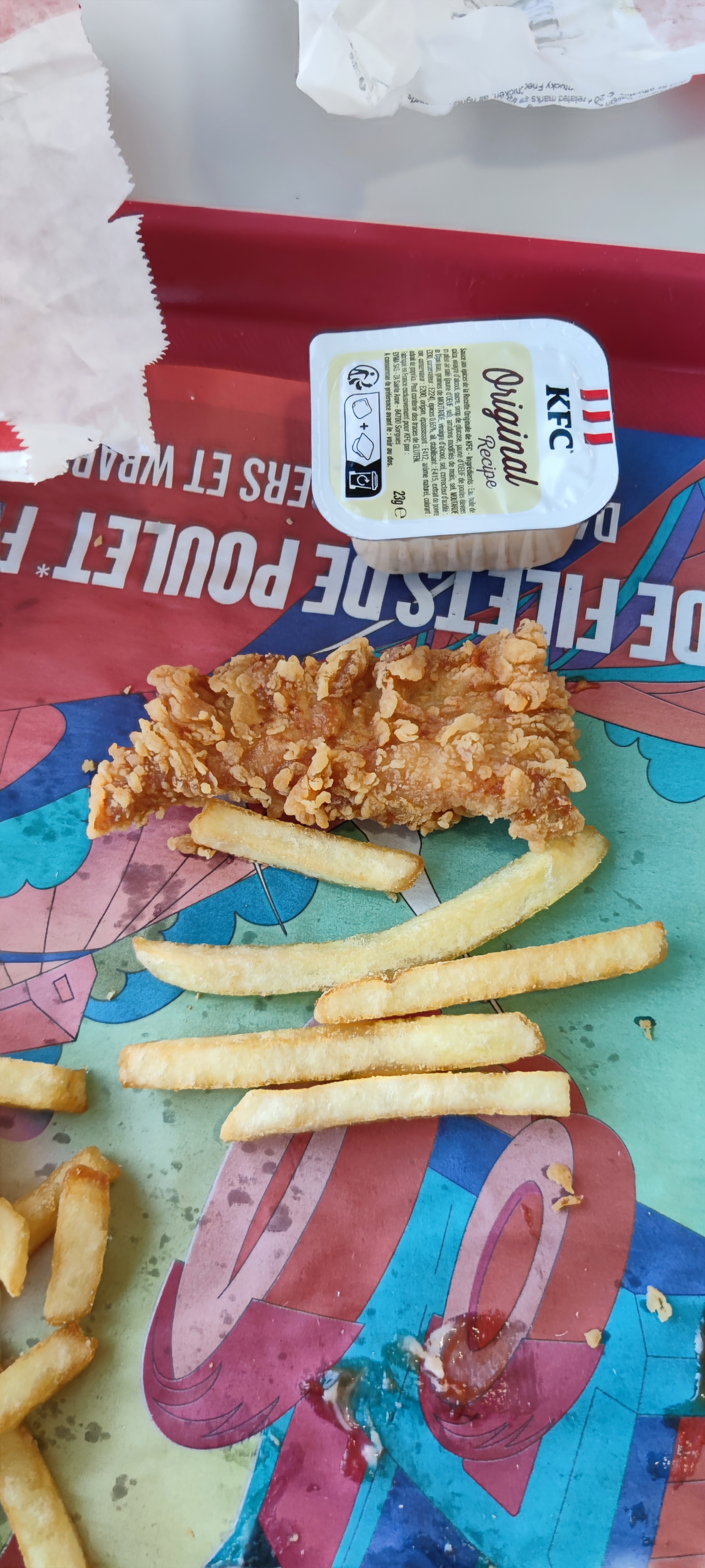 Tenders miniatures de la taille d'un nuggets... et froid en prime... Et les frites molles, n en parlons pas... Il est loin le temps du bon KFC