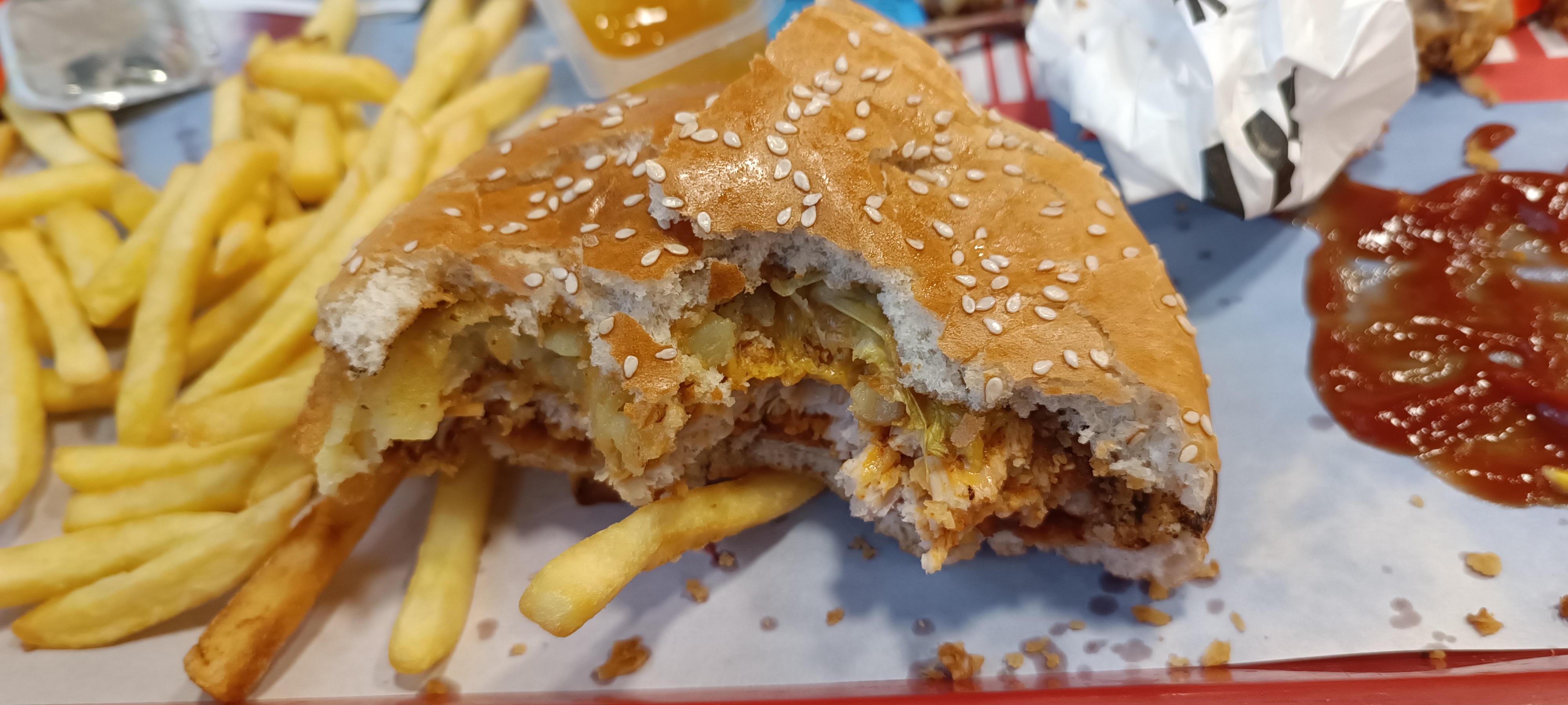 Une commande certes, reçue rapidement… mais à quel prix ?? (28,62€). Burger réchauffé au micro-onde, poulet carbonisé. Ketchup, mayo ? Non. Sauce salade ? Pourquoi faire ? Je vous déconseille fortement.