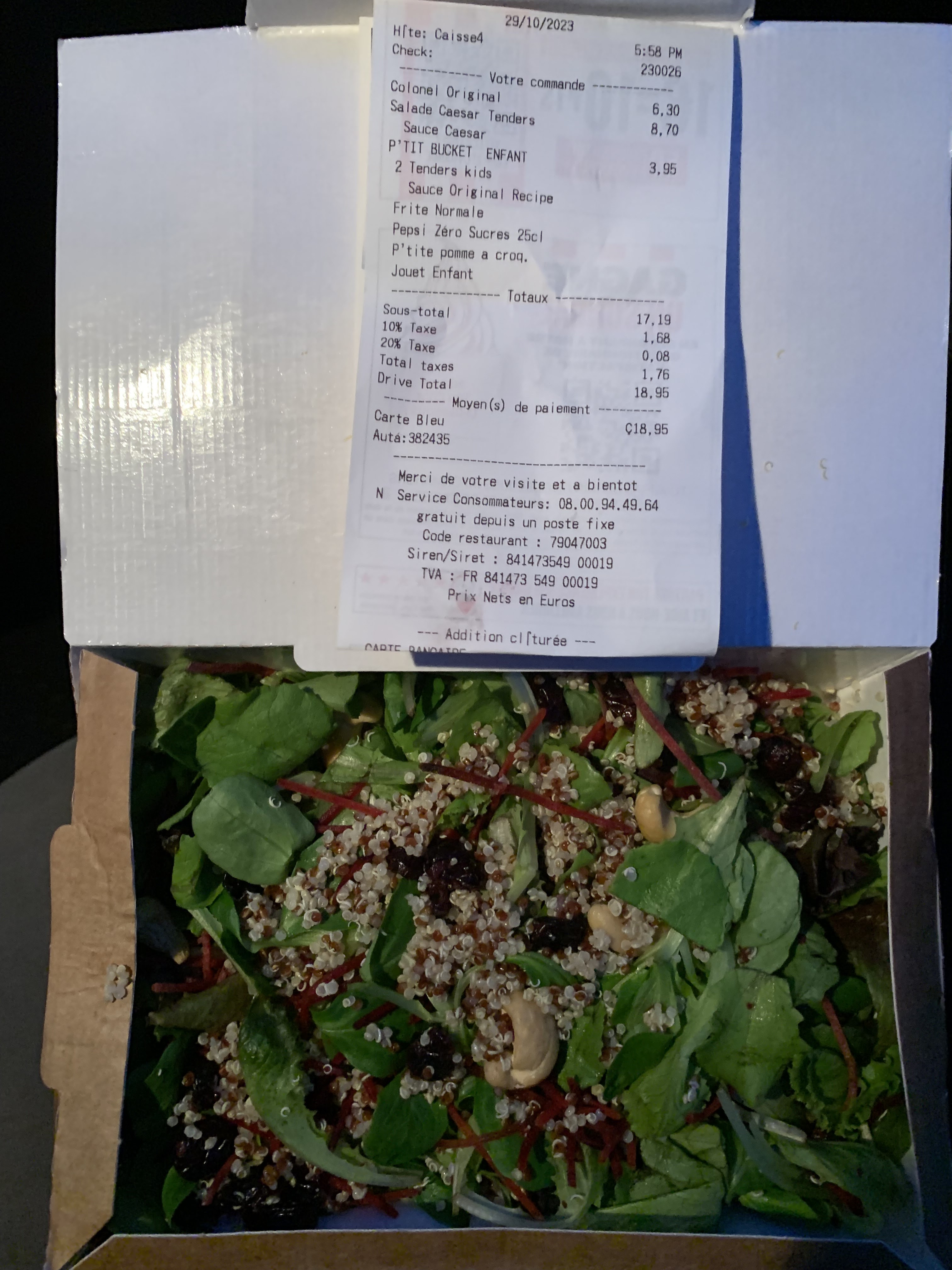 Bonjour je viens de voir certains commentaires honnêtement je ne suis pas d'accord c'est juste hyper bon je suis adepte de mc do et je n'avais encore jamais goûter kfc en 27 ans oui oui je sais j'aurais déjà du y aller 🤣🤣 mes 5 étoiles sont justifier jai commander par internet je suis arriver et hop 5 min pas plus j'avais ma commande dans la voiture si sa c'est pas super et ensuite on en parle du goût qui est EXTRAORDINAIRE j'adore je suis fan les prix le goûts la texture même les boissons sont excellente merci à vous pour votre gentillesse et votre travail à très bientôt