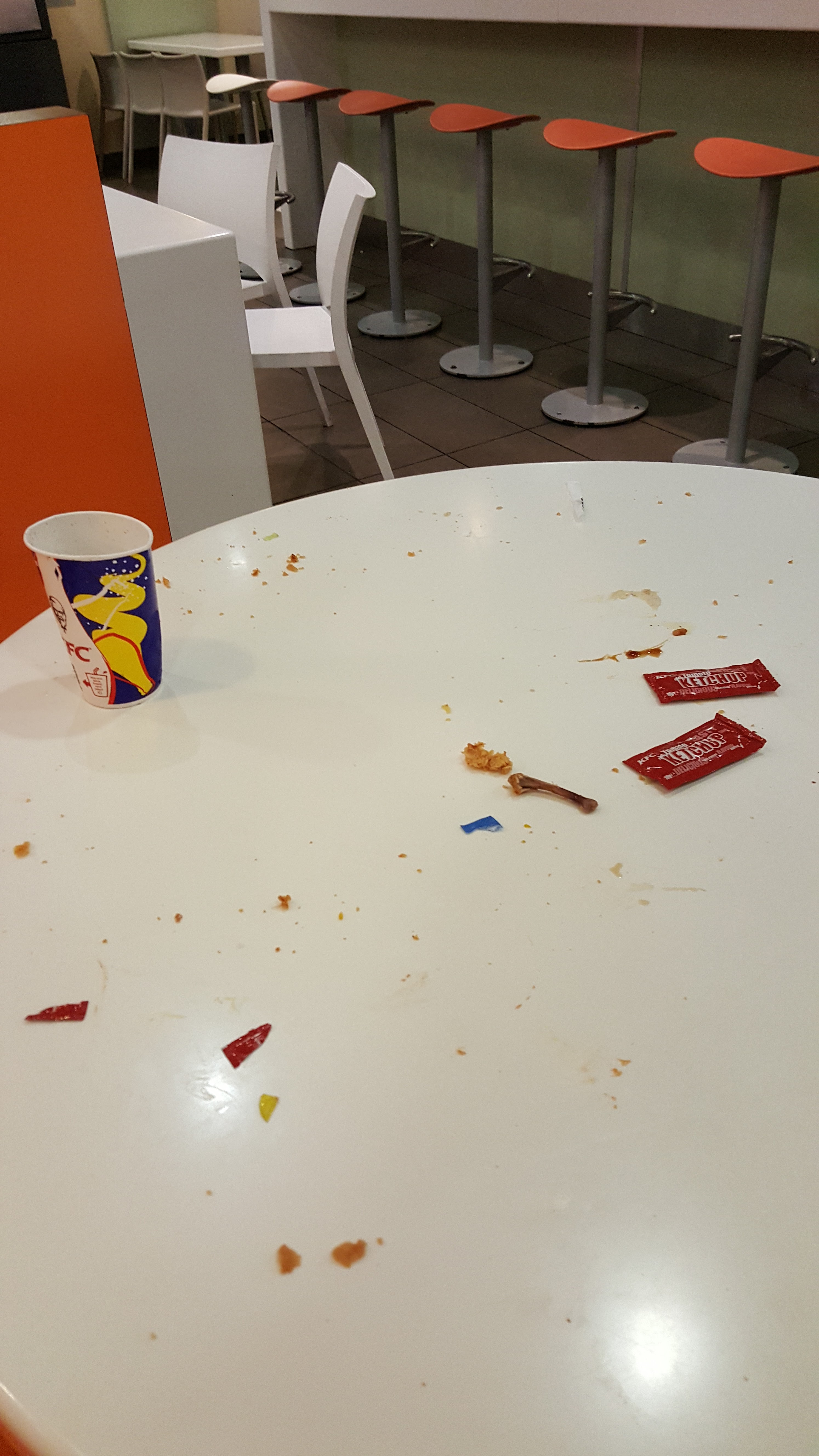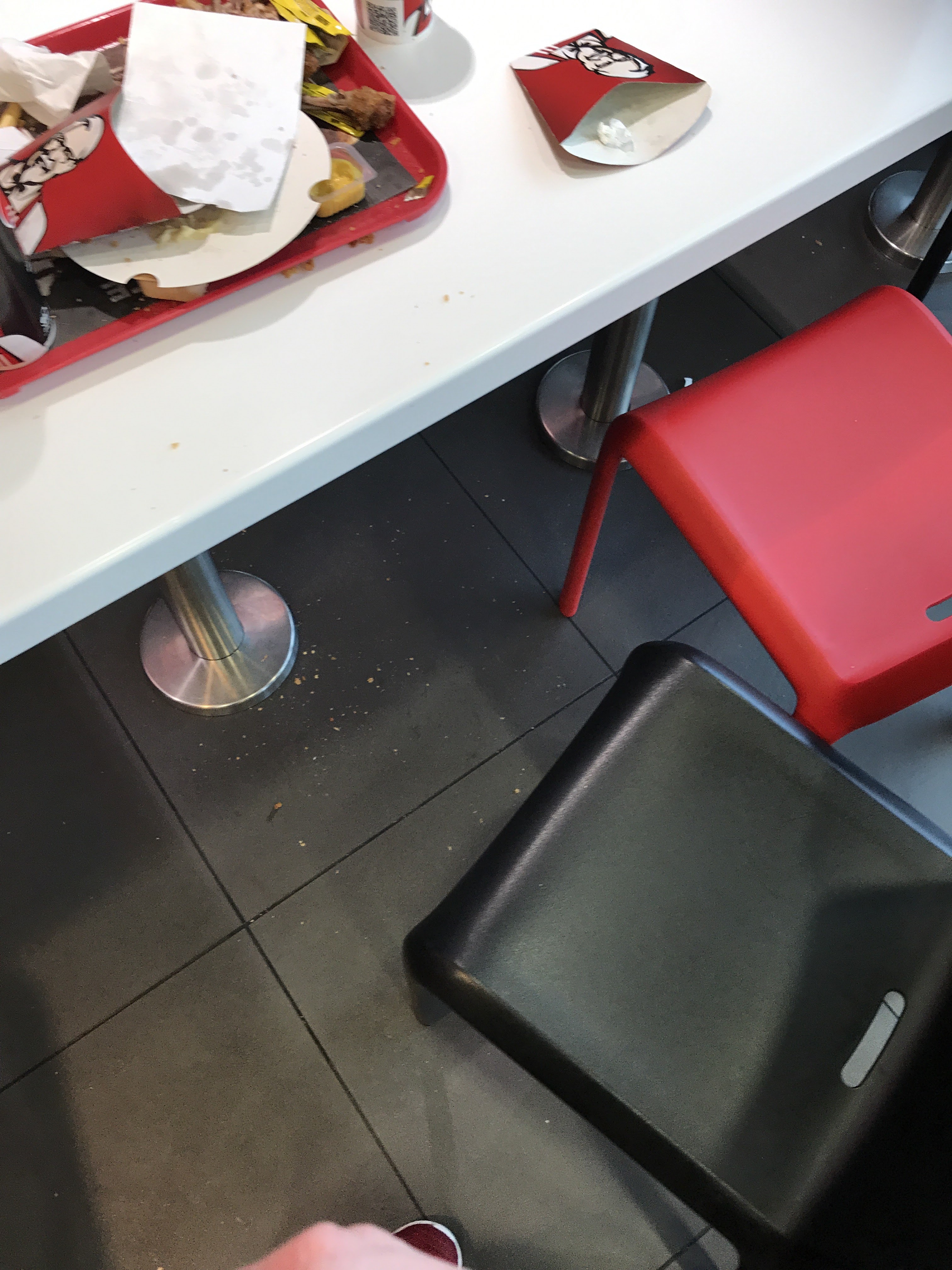 Honnêtement j avais hâte d aller au KFC mais en arrivant les bornes qui ne marchent pas + la propreté des tables, des bacs et des toilettes surtout des toilettes laisse à désirer en plus il manquant la moitié de la commande et je rejoins largement les 1utres avis sur la quantité infime de nourriture à manger vraiment décevant je vous déconseille ce KFC !!!