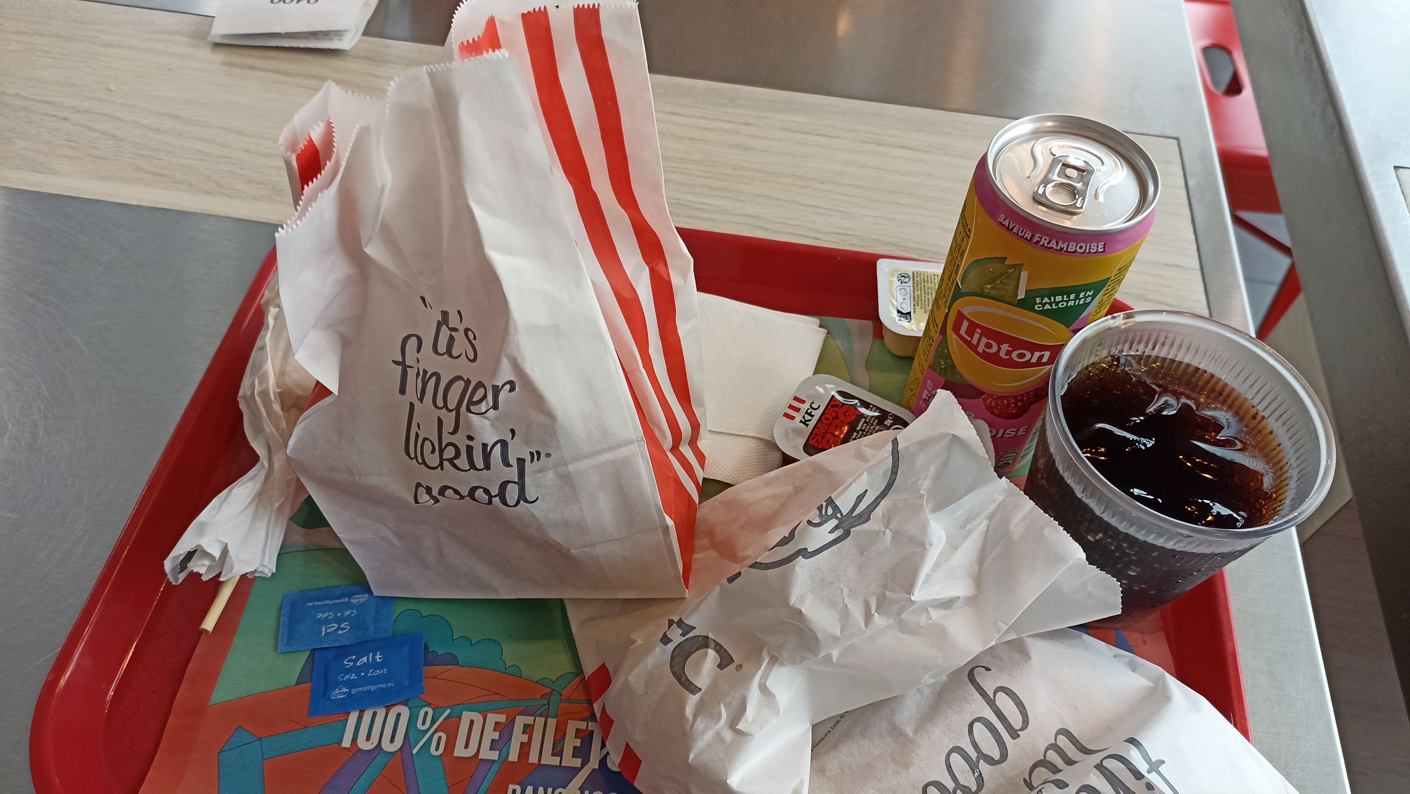KFC sans plus. 10 minutes d'attente pour avoir des tenders à peine croustillants. De plus j'avais commandé un supplément de deux tenders que j'ai bien évidemment payé, et qu'elle surprise en arrivant chez moi de découvrir qu'ils n'y étaient pas. J'aurai dû vérifier tant pis pour moi.