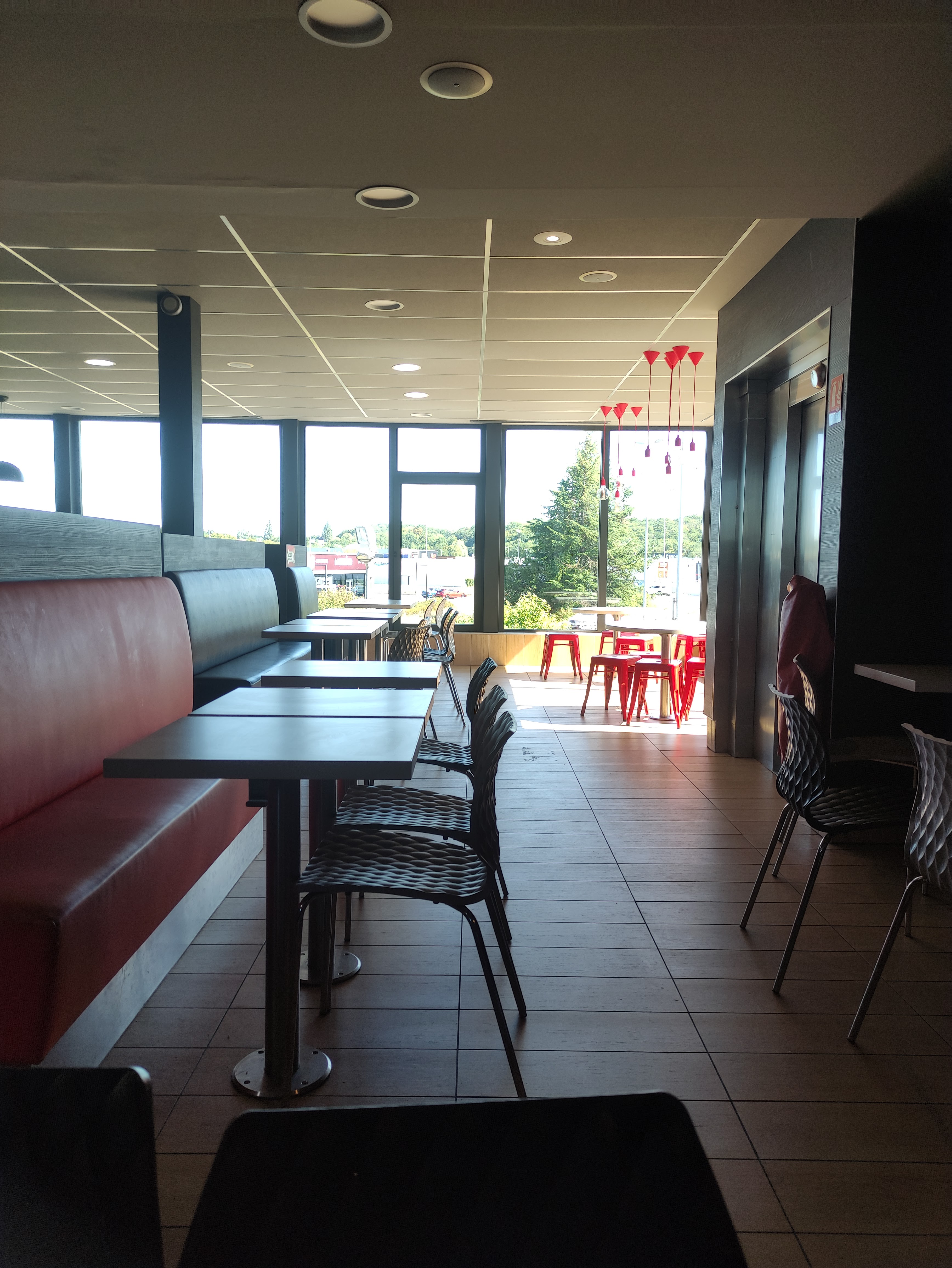 Le restaurant est bien place avec des places de parking disponible à proximité. La salle a l'étage est spacieuse et bien aménagé. Les commandes passées à la borne sont prise rapidement et servie avec le sourire. Dommage que la propriété laisse un peux a désire.