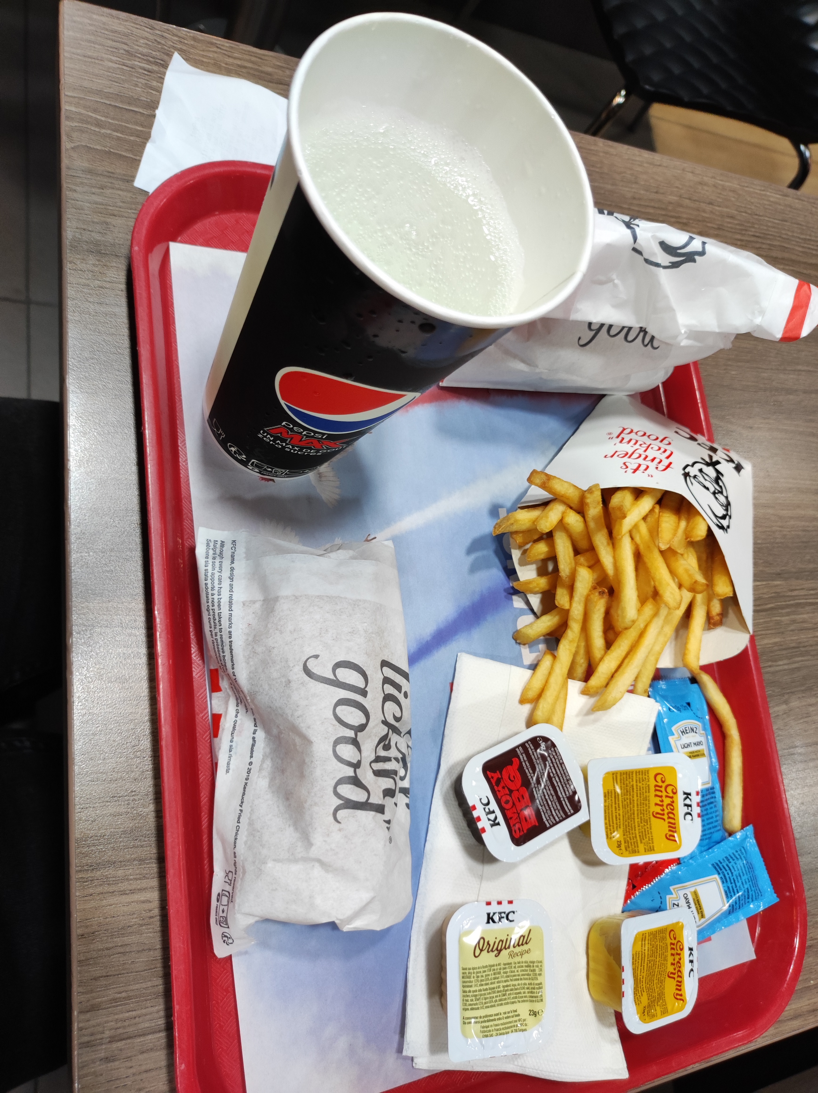 Jamais vu un KFC aussi sale.. le sol, les tables.. meme en demandant, personne s’en occupe, sur place pdt 1h de 20h30 a 21h30