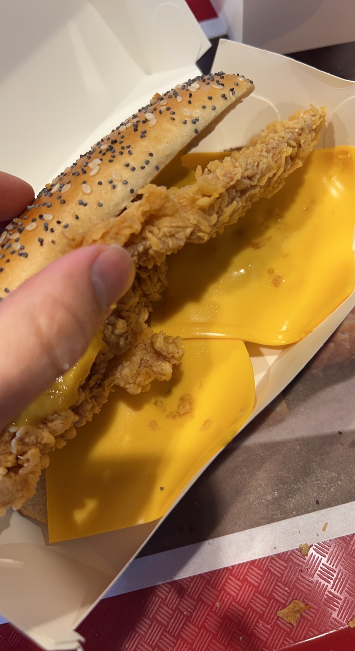 Pour une fois depuis longtemps le burger était chaud 😜...et oui je vais habituellement sur Lyon où malheureusement depuis un moment tout est servi à peine tiède et pas cuit....merci KFC Mondelange