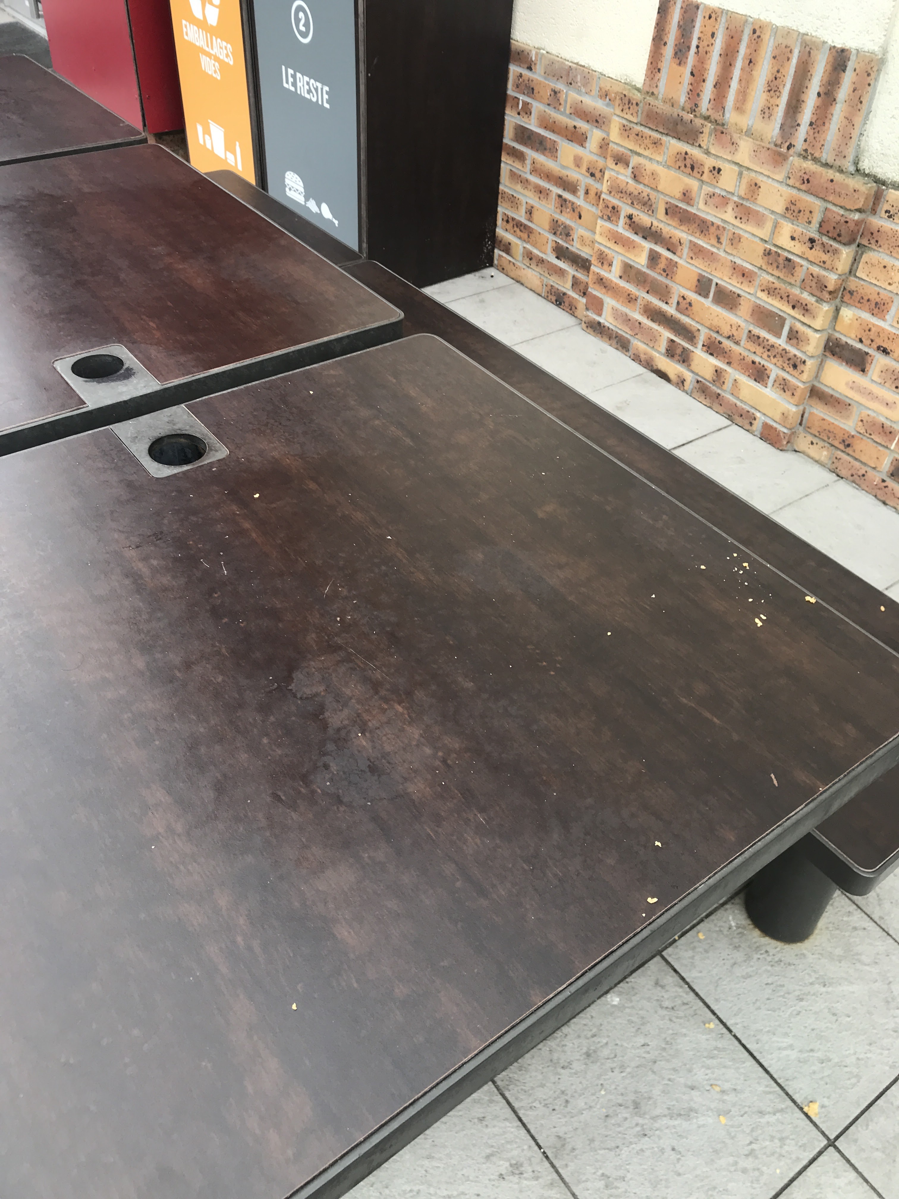 Bonjour j ai été manger hier soir quand nous sommes rentrer au niveau des bornes pour commander tout était OK mais quand on a commencer à avancer dans le restaurant nœud avons vu des poubelles déborder des repose plateau rempli un sol sale et pleins de moucherons au niveau des poubelles dommage que nous avons payer parce que nous serions partie aussi sec