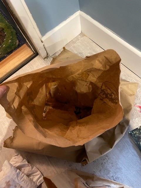 Commande à emporter ce jour. On vérifie, tout y est! Mais surprise à la maison quand on se rend compte que le Tower est spicy alors qu'on a bien commandé un original. A savoir donc pour la prochaine fois: vérifier le contenu ET prendre un croc pour être sûr d'avoir la bonne version. Le Tower a fini à la poubelle 👍