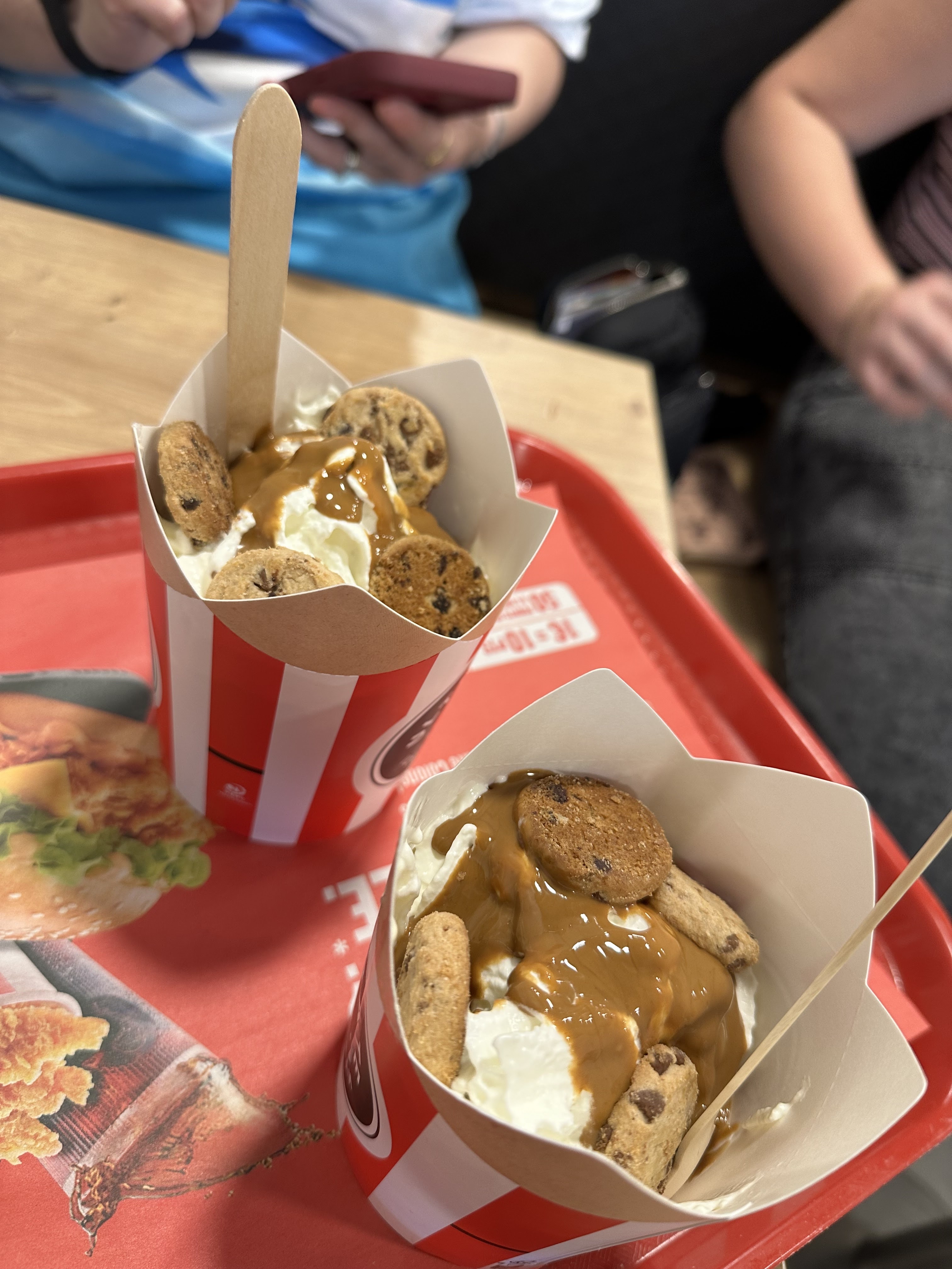 Employées très souriant et accueillant. Au niveau de la nourriture, les tenders sont croustillant mais attention au surplus de chapelure. Nos sandwichs étaient très savoureux et les glaces étaient bien doser.