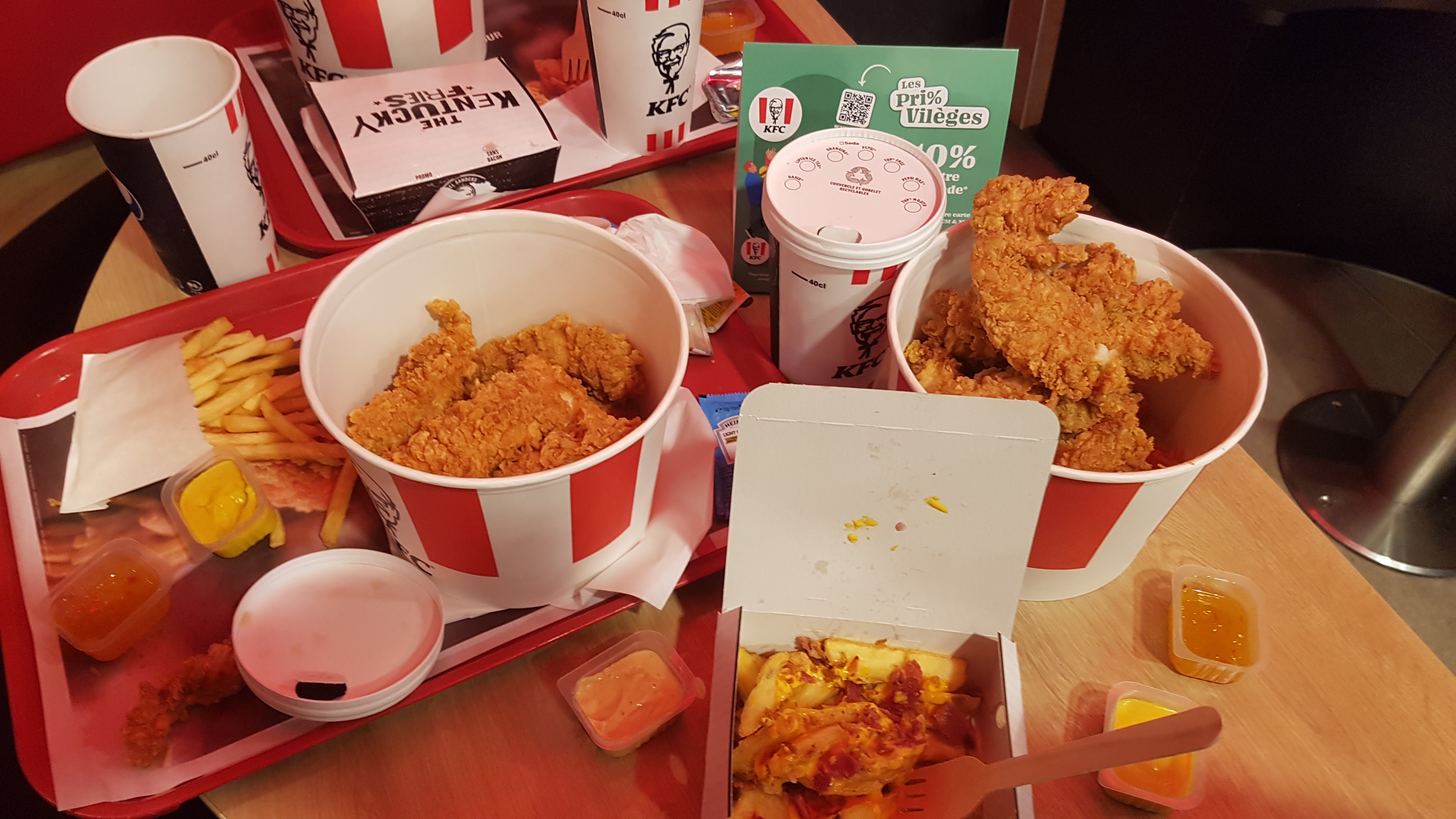 C’était super bon et rapide ! Les burgers top ainsi que les frites cheddar ! Cependant, le spicy box master était bof en termes de garniture. Mais sinon toujours aussi bon kfc ça change pas un BONHEUR.