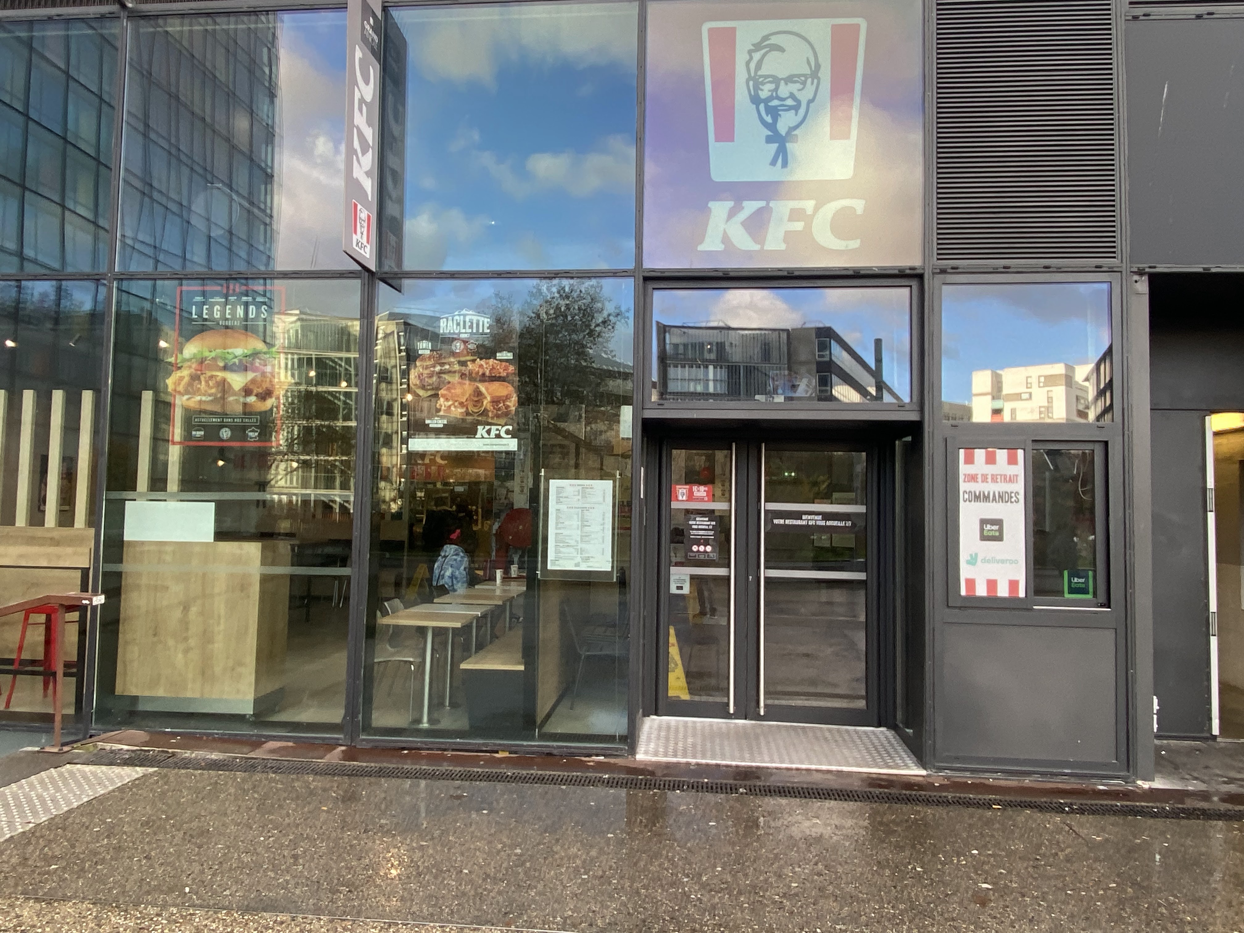 Ouvert depuis le 21 juin je tente ce KFC. Frites froides et sèches, wrap sec et surtout Pepsi max sans bulles et ressemble à de l eau avec deux sucres. Attention à la taullière badass ce qui explique le peu de client.
