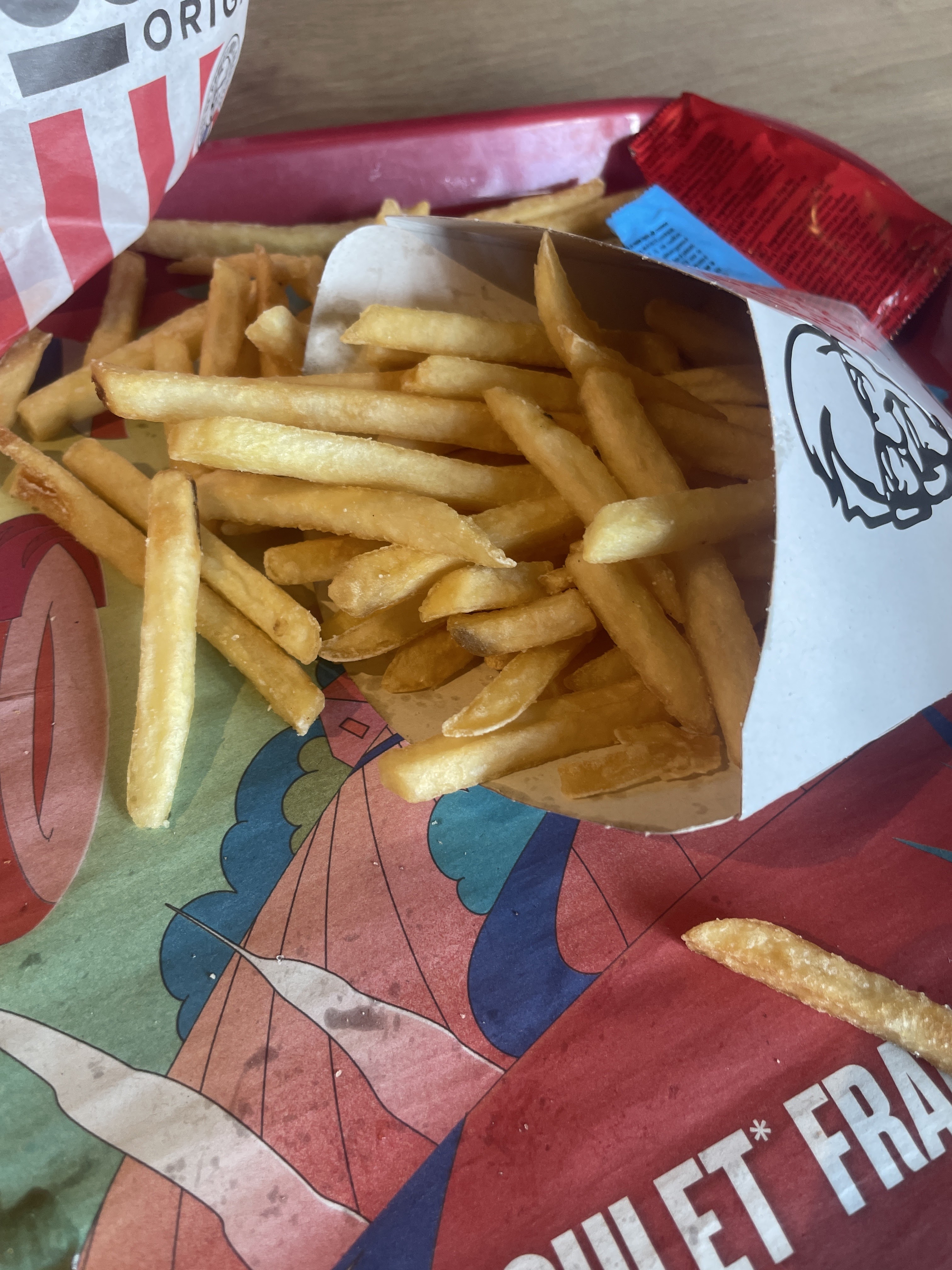 J’ai acheté un bucket de tenders pour 4 personnes à emporter, en arrivant chez moi il n’y en avait que 16! Déjà les morceaux étaient fins si en plus il n’y a pas le compte .. c’est le comble. J’y suis retourné pour avoir mon dû, … et rien! Merci KFC, c’est très commercial comme attitude !
