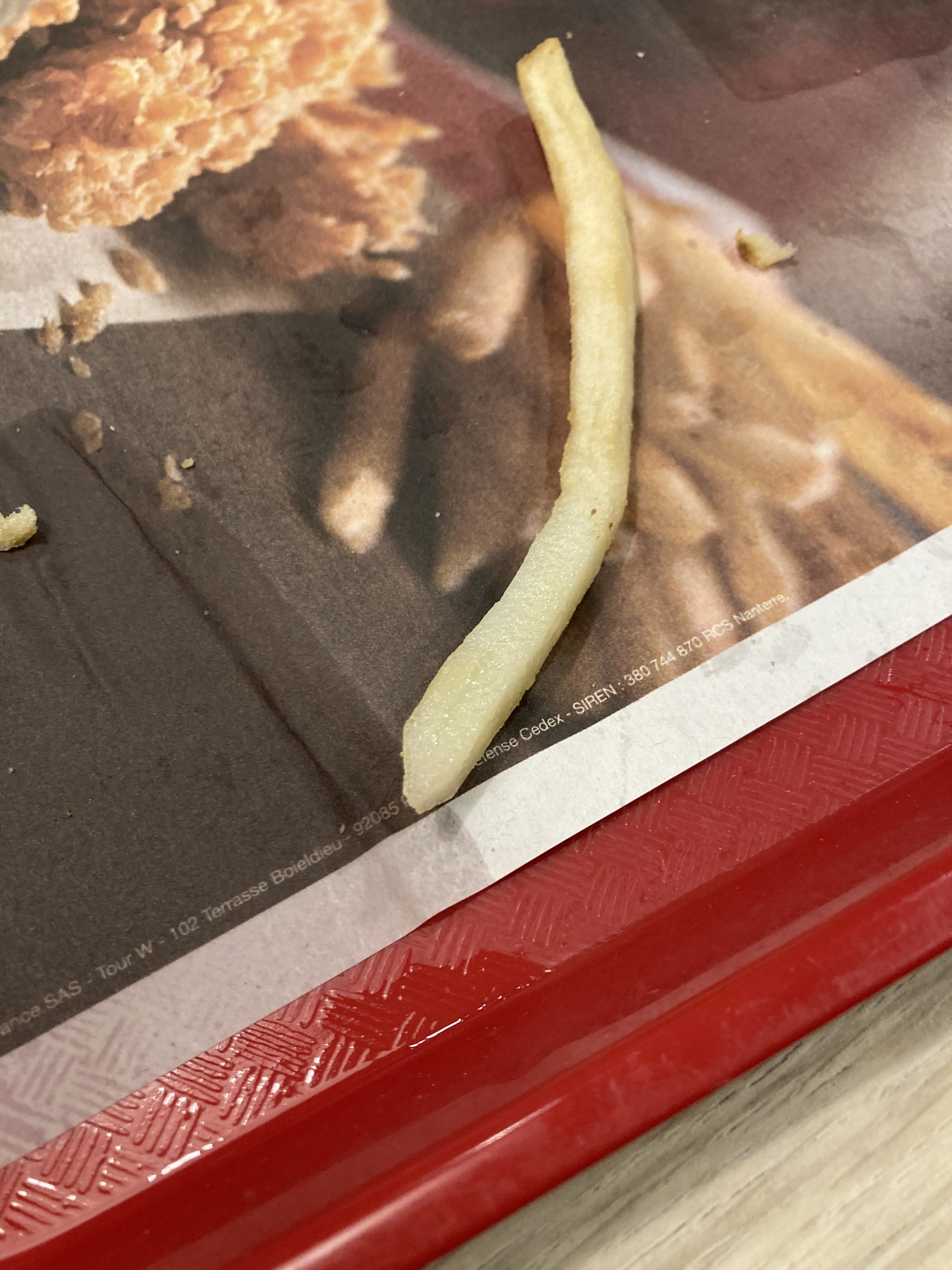 J’ai pris un bucket de 20 tenders mercredi 24 mai dans l’après-midi, au drive. Je démarre sans vérifier la fraîcheur des tenders. Je m’arrête 50 mètres plus loin pour en goûter un, ils étaient à peine tièdes. Je décide d’y retourner afin de les faire changer ou qu’au moins on me les repasse à la friteuse. Je retourne au drive et informe la jeune femme qui m’a servi. Elle prend le bucket, un jeune homme revient avec ce qui aurait dû être un bucket tout frais, je lui demande si cette fois les tenders sont chaud et frais, le jeune effronté me regarde droit dans les et me que oui. Naïf je fais confiance mais je pense que c’était le même bucket dans lequel il a simplement rajouté un nouveau tender tiède. Comme j’étais pressé par le temps je décide de manger en roulant retournant sur Huningue, je pioche de nouveau dans le sceau et me rend compte de la supercherie. Par manque de temps je ne suis pas retourné réclamer une nouvelle fois ! En revanche je n’en pense pas moins de ce jeune et de son audace… Pour la direction, pensez à vous affranchir de l’honnêteté de vos employés, l’erreur est permise, la tromperie intentionnelle beaucoup moins.