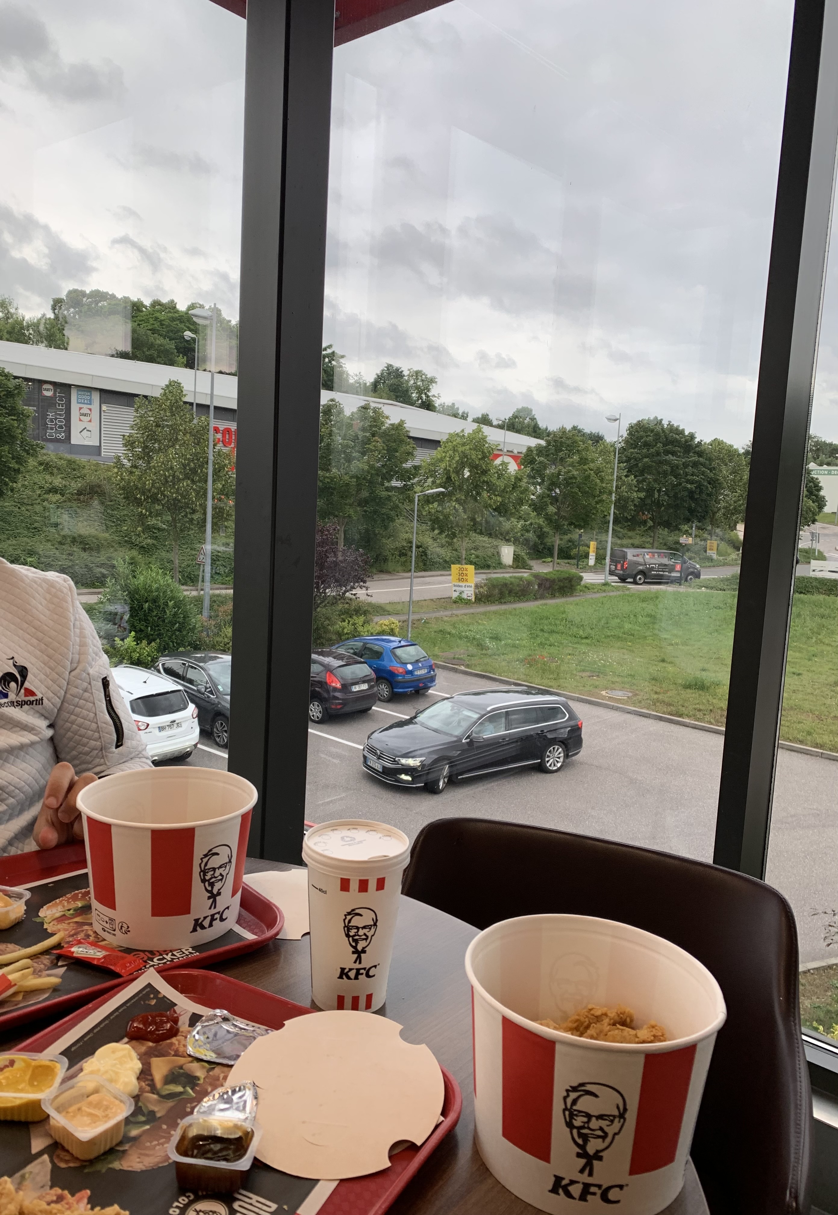 Je suis passé dans ce KFC samedi juste pour prendre une boisson rafraîchissante on nous demande à la borne de prendre un chevalet et de s'installer au bout de 10mn je suis allée voir au contoir la commande attendait cela devrait être signalé que si on ne consomme qu'une boisson on doit la récupérer soi même je trouve que celui d'essey est mieux.