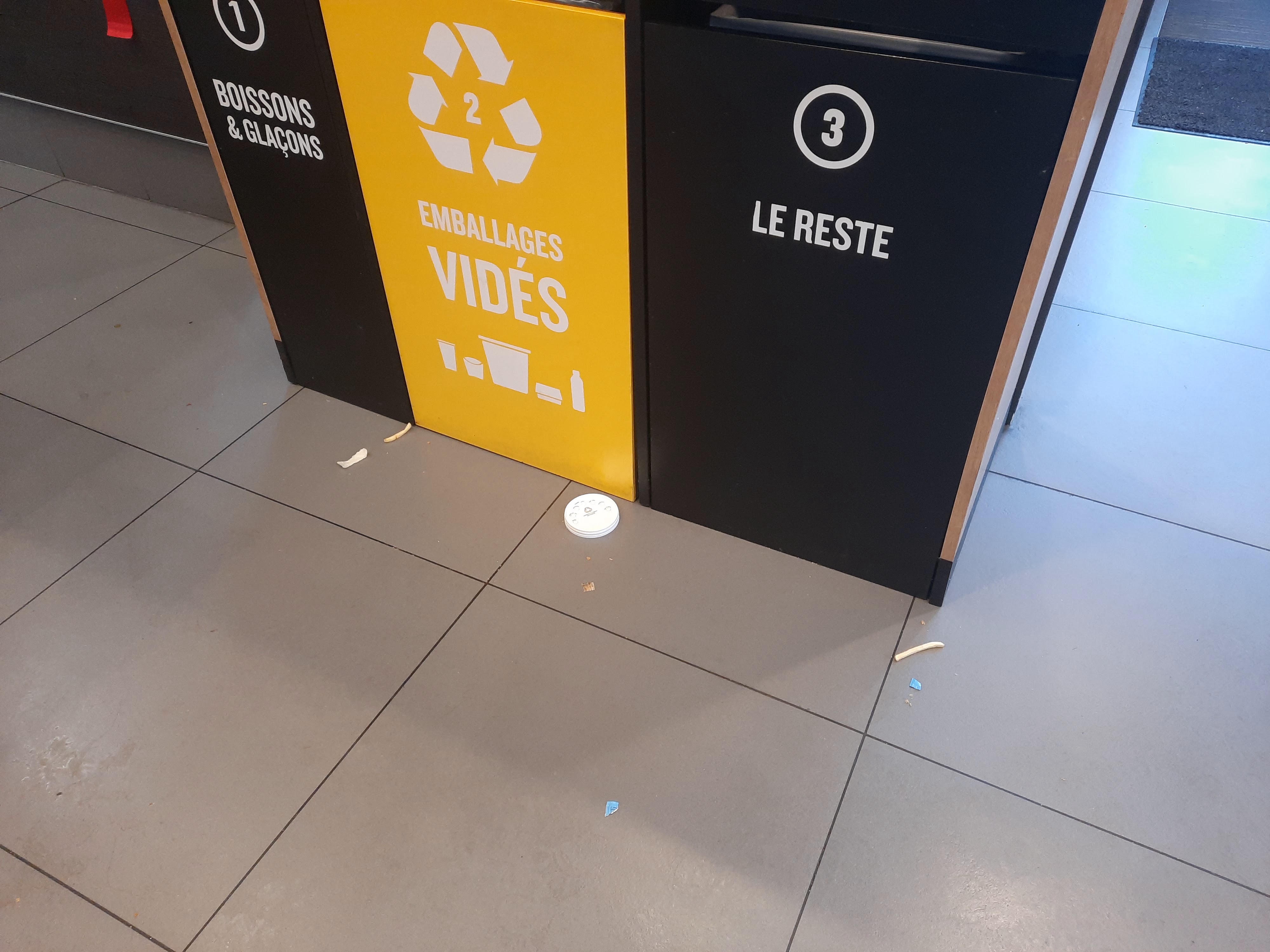 Il manque justes des serviettes avec les plateaux et aussi quand un plateau vide est au sol est ce normal que certains employées passe à côté sans ramasser et que ce soit une cliente qui ramasse……