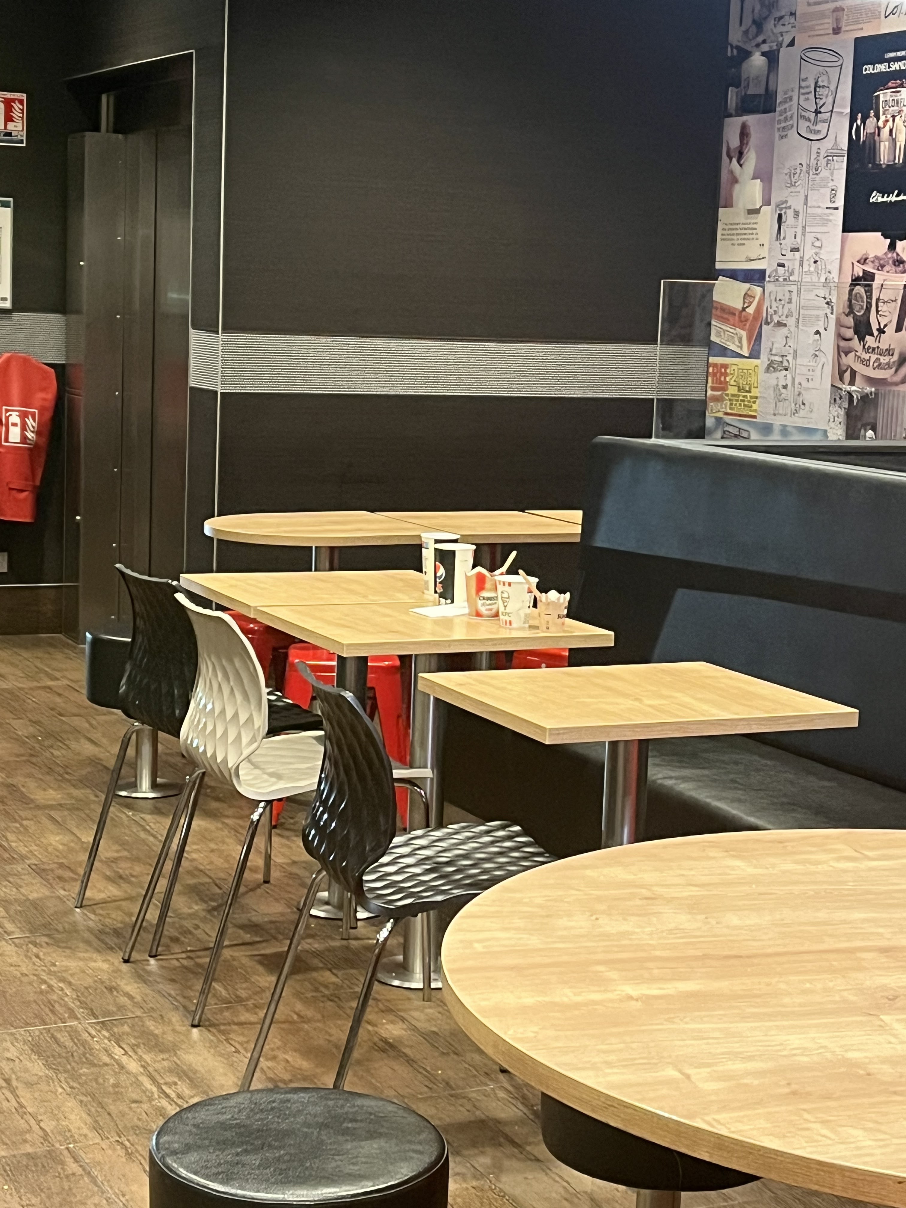 Plusieurs bornes de commandes qui dysfonctionnent, je suis pas fan du tout frie, le goût des sauces vraiment apre, ça confirme que cette enseigne ne correspond pas à mes goûts, il en faut pour tout le monde 😉