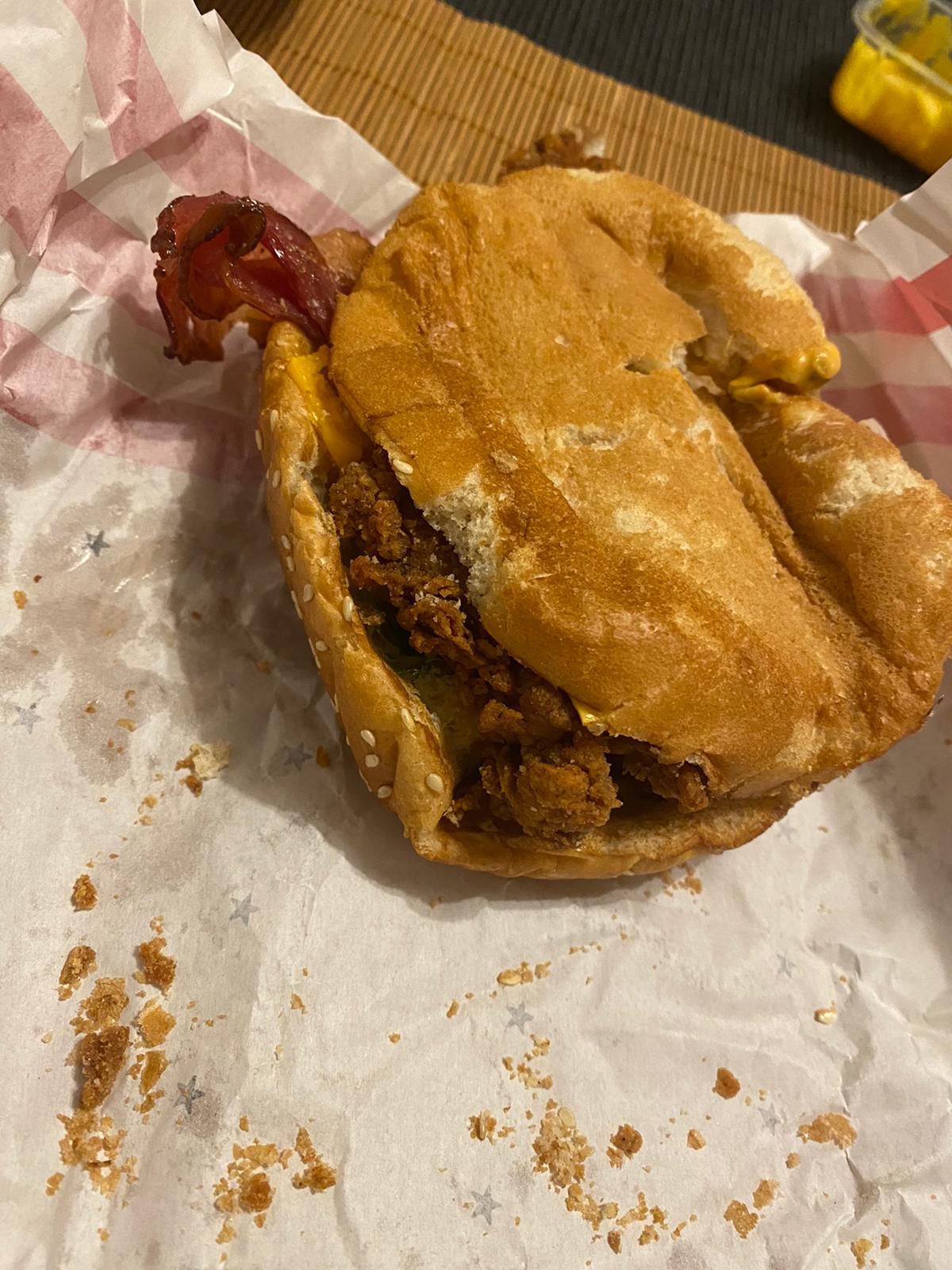 KFC honteux, burger ultra sec, pain dur, poulet pané à l'intérieur limite cramé. Sûrement un non respect du temps où entreposer le burger au chaud. Boisson à moitié remplie. J'aimerais bien mettre un zéro mais ce n'est pas possible.
