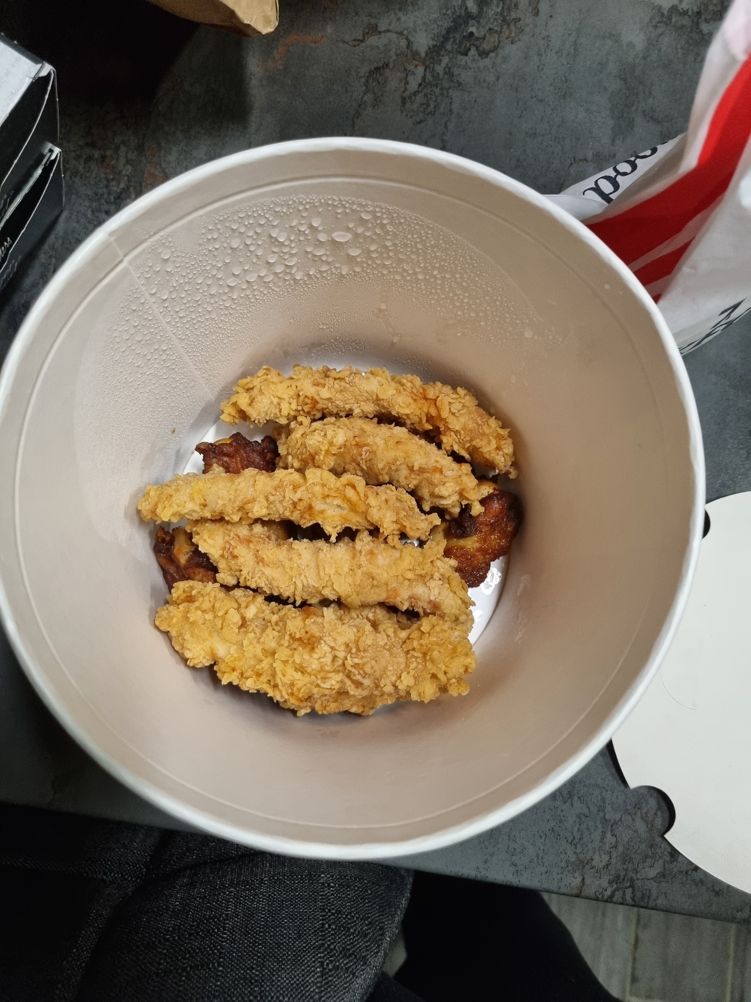 Déçu par les portions de poulets dans le grand seau. Des tenders raides comme la justice et aussi gros que mon petit doigt. Le burger colonel aussi gros qu'un hamburger et tout mou. Déçu par ce restaurant. C'était ma première fois et ma dernière.
