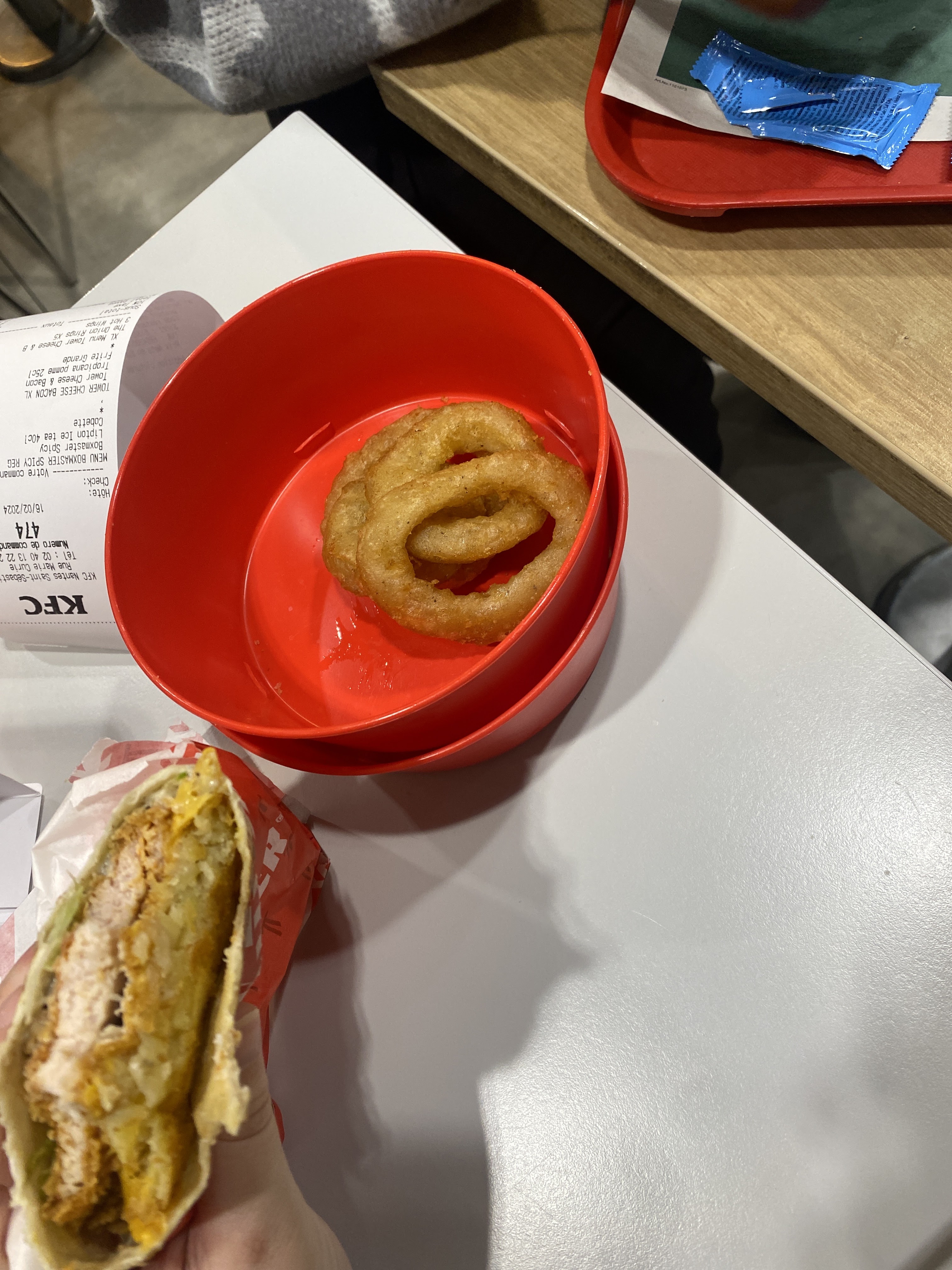 Superbe service, merci pour la rapidité. (Les tenders et le burger était super bon)
