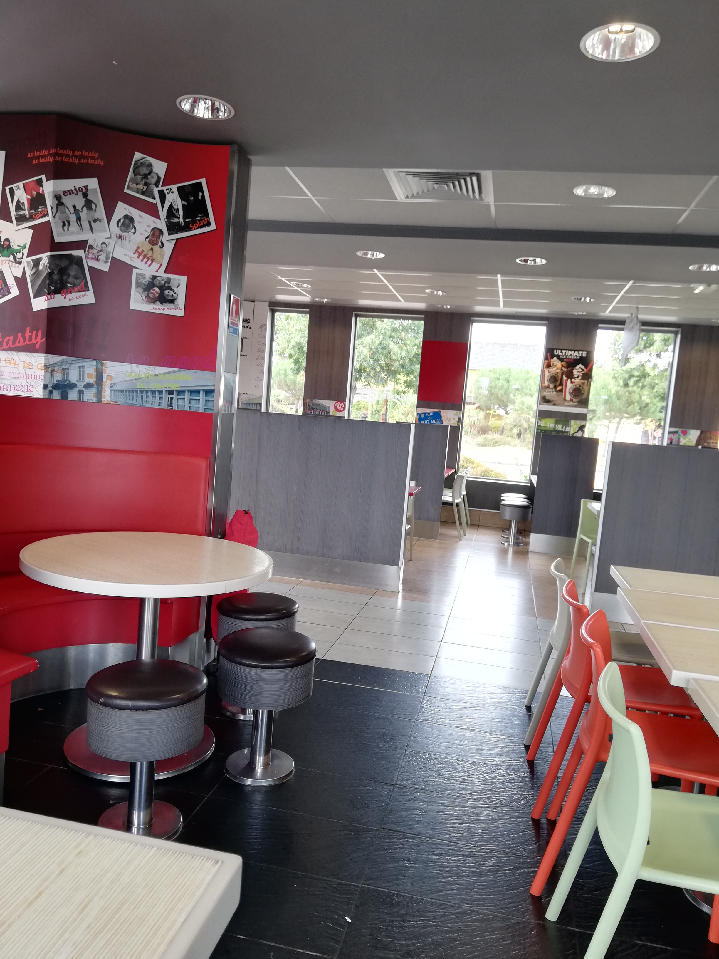 Arrivé à 18h00 lundi de Pentecôte, pas beaucoup de monde à cet heure là....longue attente pour payer la commande au comptoir. Visiblement des serveuses plus occupées à discuter et rigoler avec des amis. Beaucoup de tables pas nettoyées. Dégueulasses en fait. Des crips réchauffées, (de la veille) qui craquent sous la dent, pas du tout appréciables. Au moment de rendre le plateau et faire le tri, les 4 ou 5 étagères du restaurant étaient déjà remplies de plateaux....il y avait sans doute grève générale. Bref ça donne l'impression que certains se battent pour en faire le moins possible.... Tenders très bons ainsi que les glaces néanmoins.