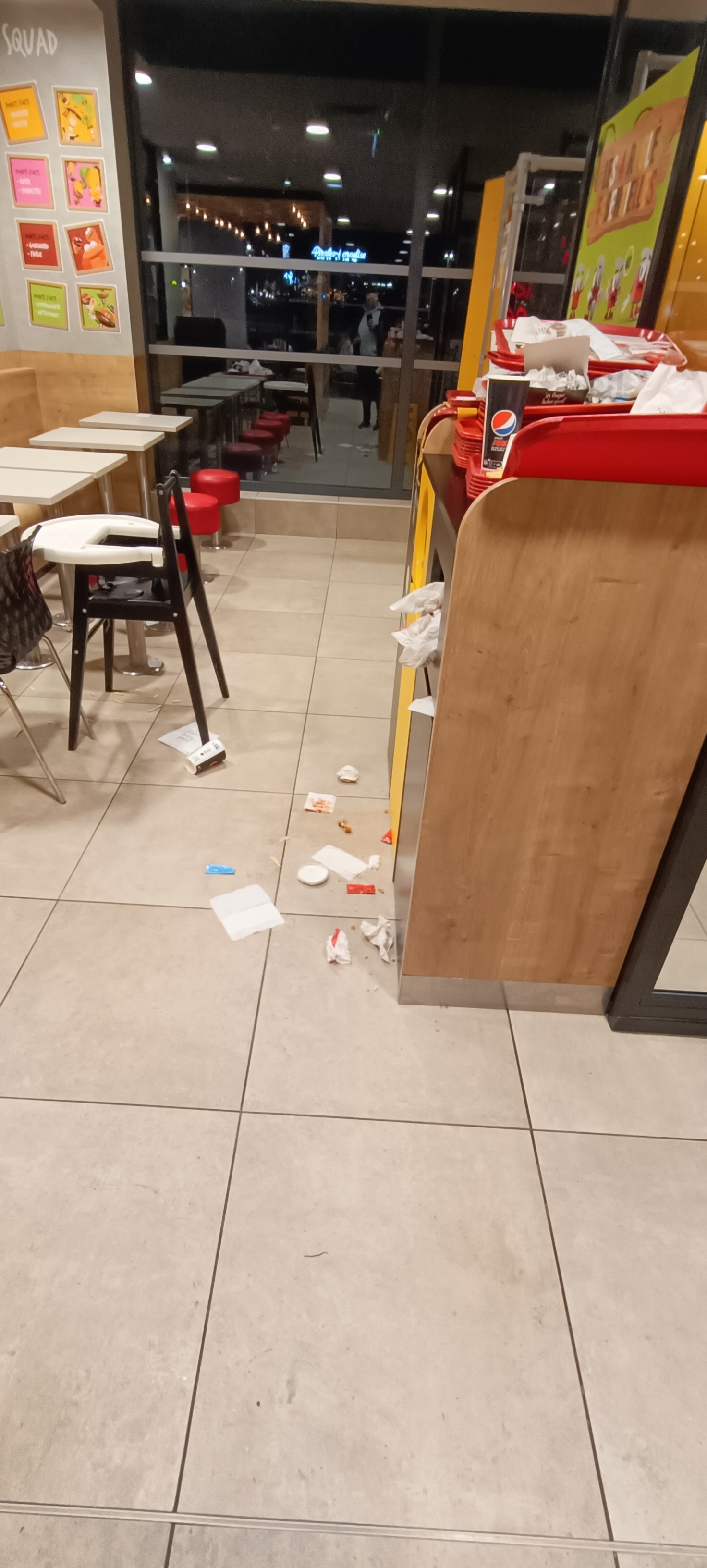Je n'ai jamais vu un restaurant aussi sale ! Sauces, frites, poulet partout par terre pleins de traces collantes. La terrasse idem rien de nettoyer tables sales le sol idem. Frites dégueulasses on dirait qu'elle sont réchauffées poulet sec et pas très chaud. Menu enfant juste 2 tenders pas de quoi nourrir assez. Les équipiers se plaignent de devoir faire les poubelles et discutent comme si elles était au café.Cela faisait 10 ans que je n'y avait pas été et franchement je n'ai rien raté je n'y retournerai plus jamais.