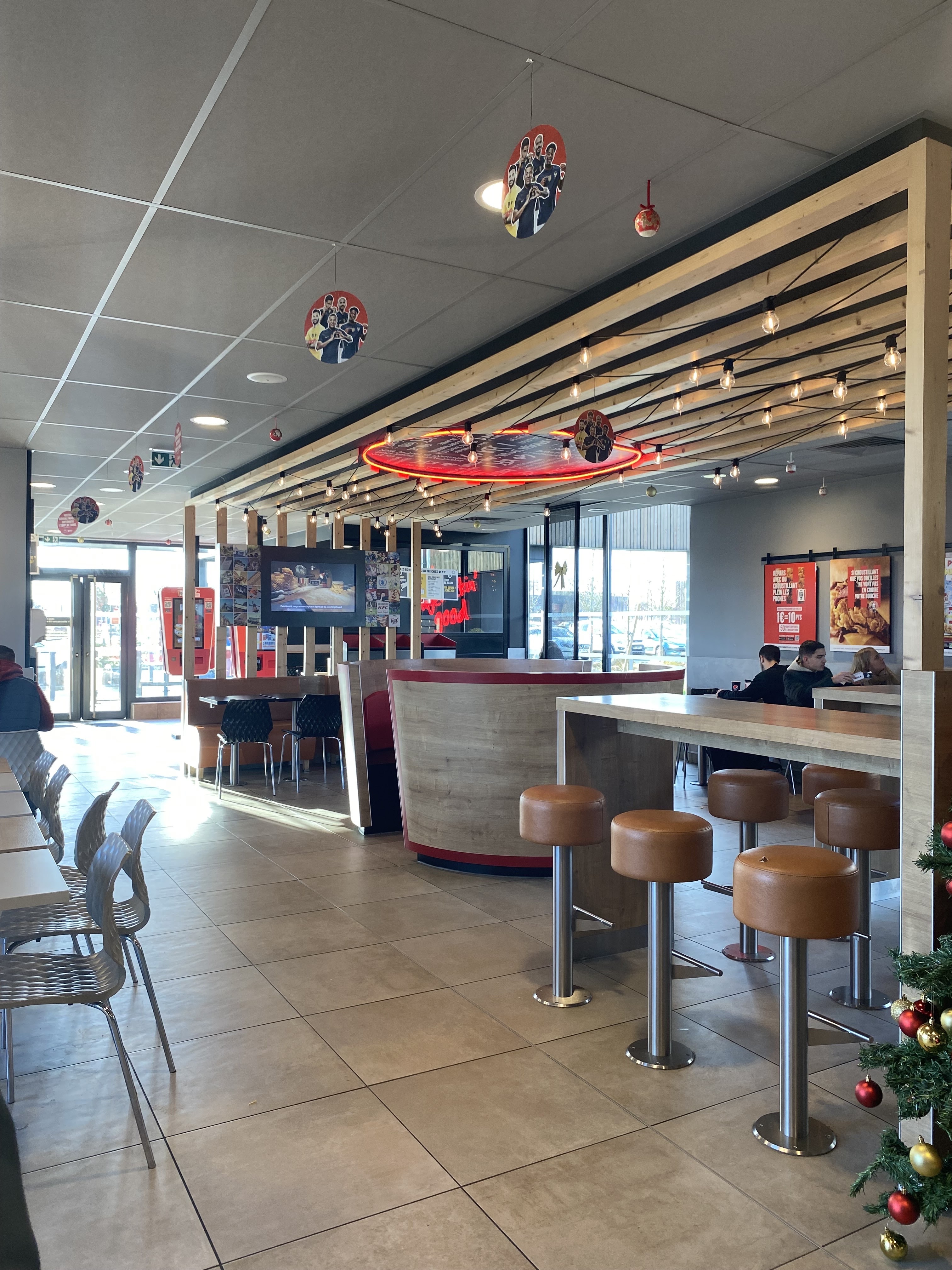 Première visite dans ce KFC ! Tout s’est très bien passé 😀 Nous sommes venus après heure de pointe - le service était rapide - passage à la borne pour commander et peu d’attente 😊 Pour ce qui est du personnel nous avons été très bien accueilli ! La commande était très bien - Wings épicées + Tenders sauce tout allait :) J’y retournerais 🤌