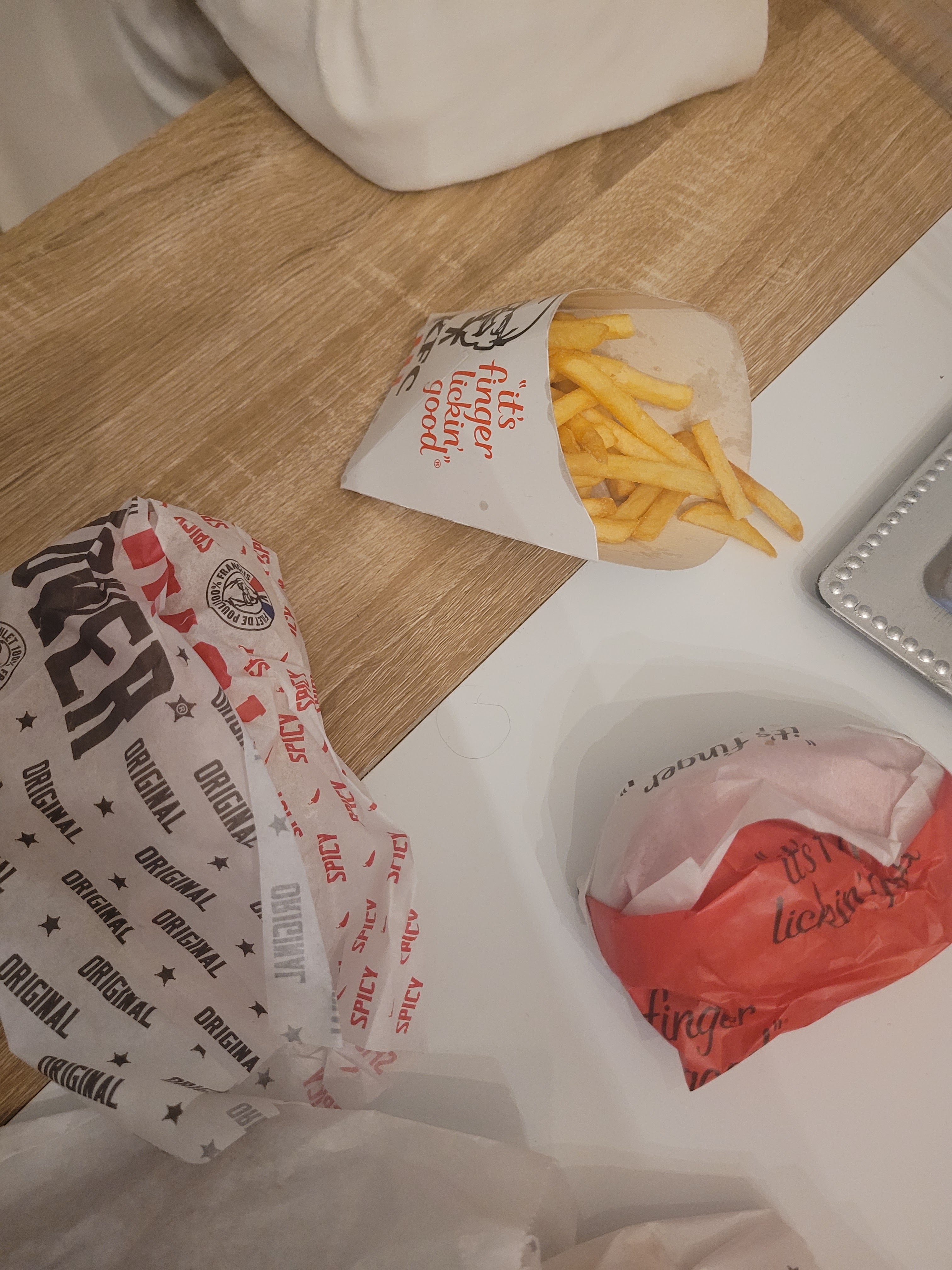 Toutes les bornes de commande étaient hors service sauf 2, les sodas étaient chauds et plats, le restaurant n'était vraiment pas propre: tables pas nettoyées, sol dégueulasse, moisissure sur les fenêtres, l'étage sentait l'urine. Le poulet était tiède, pas assez cuit et pas croustillant. Je regrette vraiment d'y avoir mangé ! Dommage de ne pas pouvoir mettre 0 étoile...