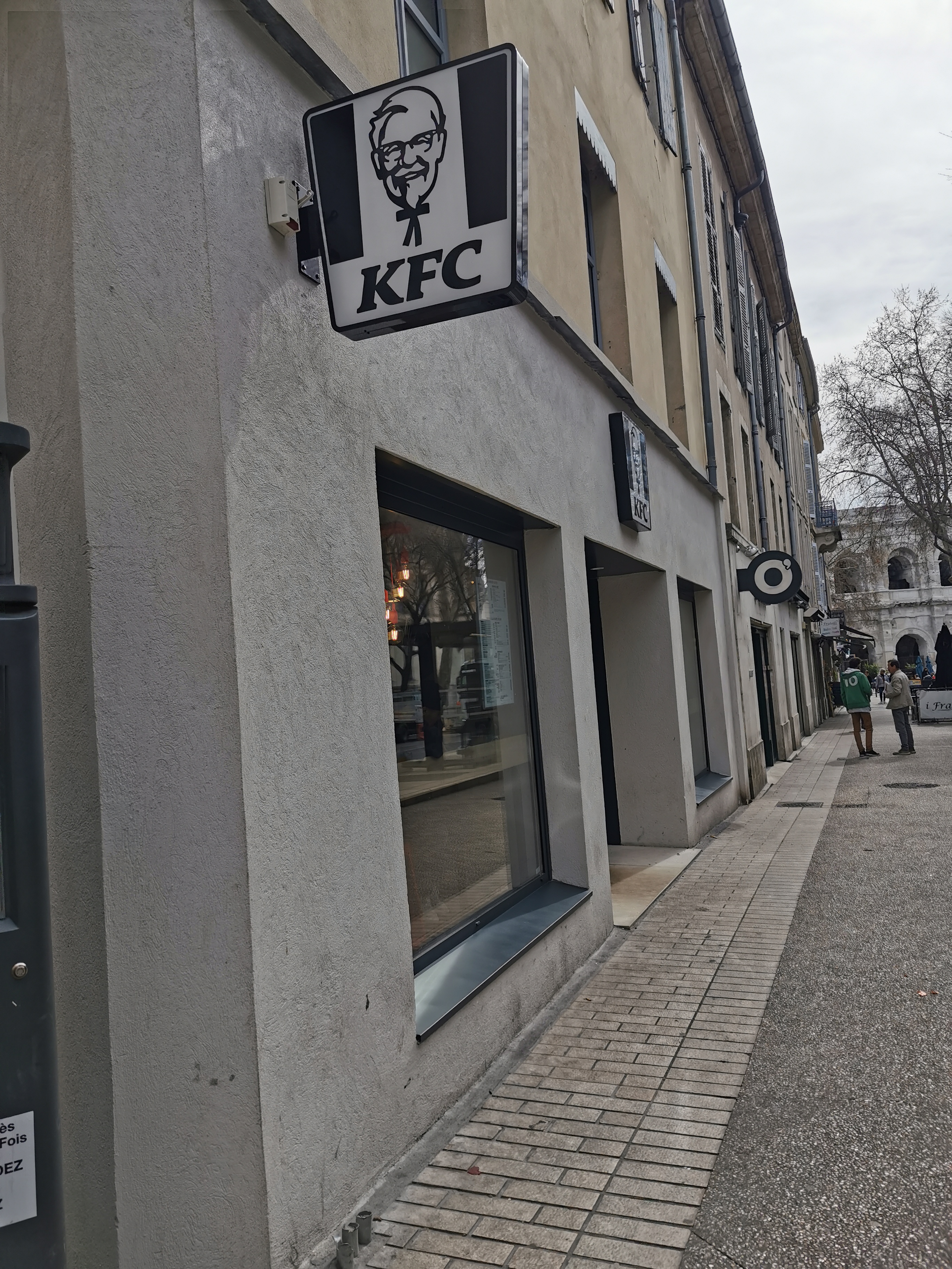 Alors très bel endroit, propre , net et précis , service très rapide pas déçu généralement les kfc sont bruyants et le nettoyage de table laisse à désirer mais la , tout était propre également les toilettes ! C’est rare allez y vous serez pas déçu! et ma prochaine visite à Nîmes j’y reviendrais avec plaisir..
