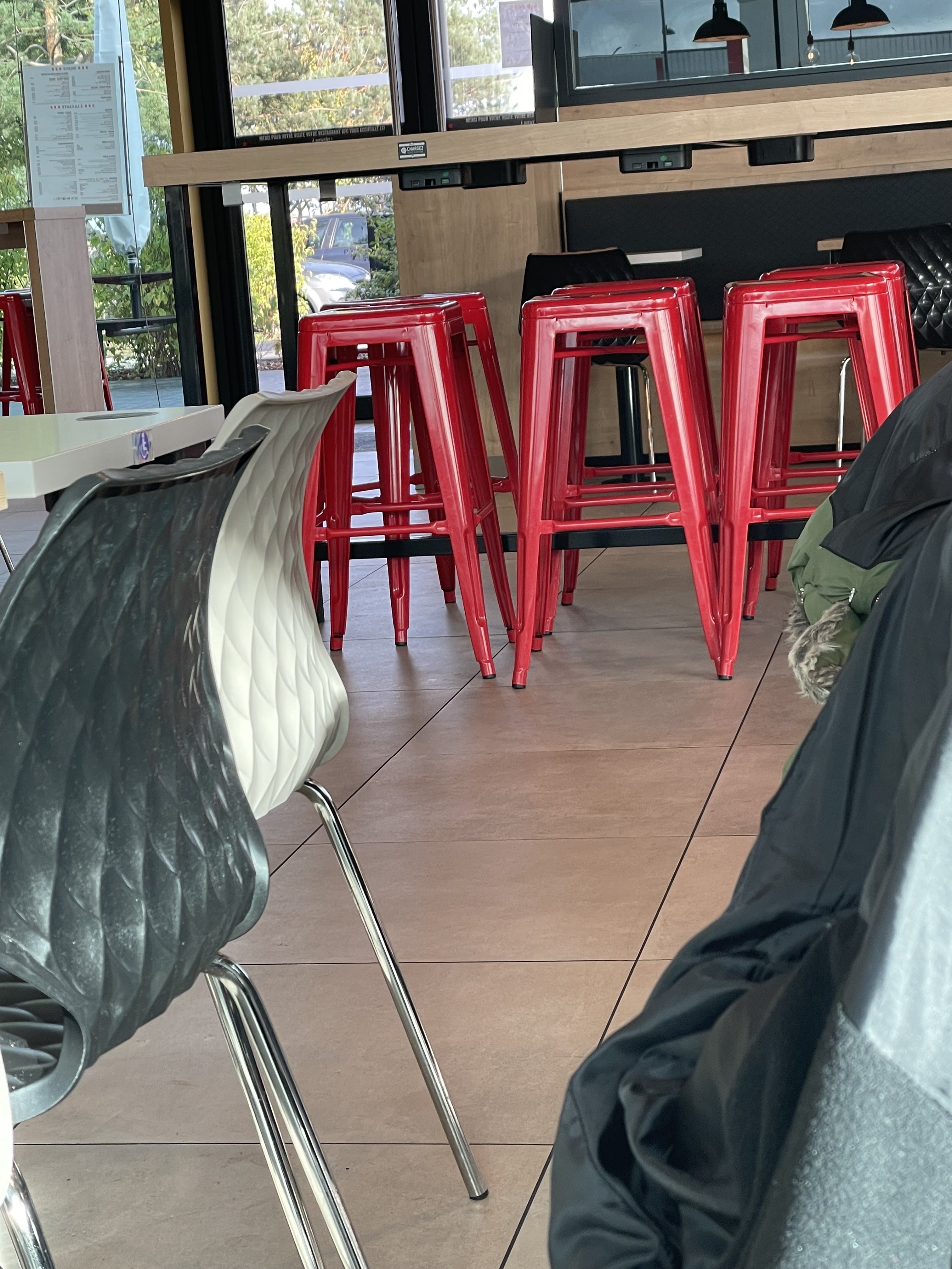 Tellement déçu... Ce n'est plus comme à leur ouverture... Le restaurant est sale (frites au sol côté cuisine, bornes sales...), Le personnel a perdu sa courtoisie... Sur notre commande du jour 1ere erreur je retourne au comptoir la personne me donne l'élément manquant...sans excuses... Je pars du restaurant je démarre et je me rends compte que une des boissons n'est pas à la bonne taille....donc je retourne au restaurant et la même personne récupère la mauvaise boisson et me donne la bonne...pas d'excuses...pas de geste commercial...