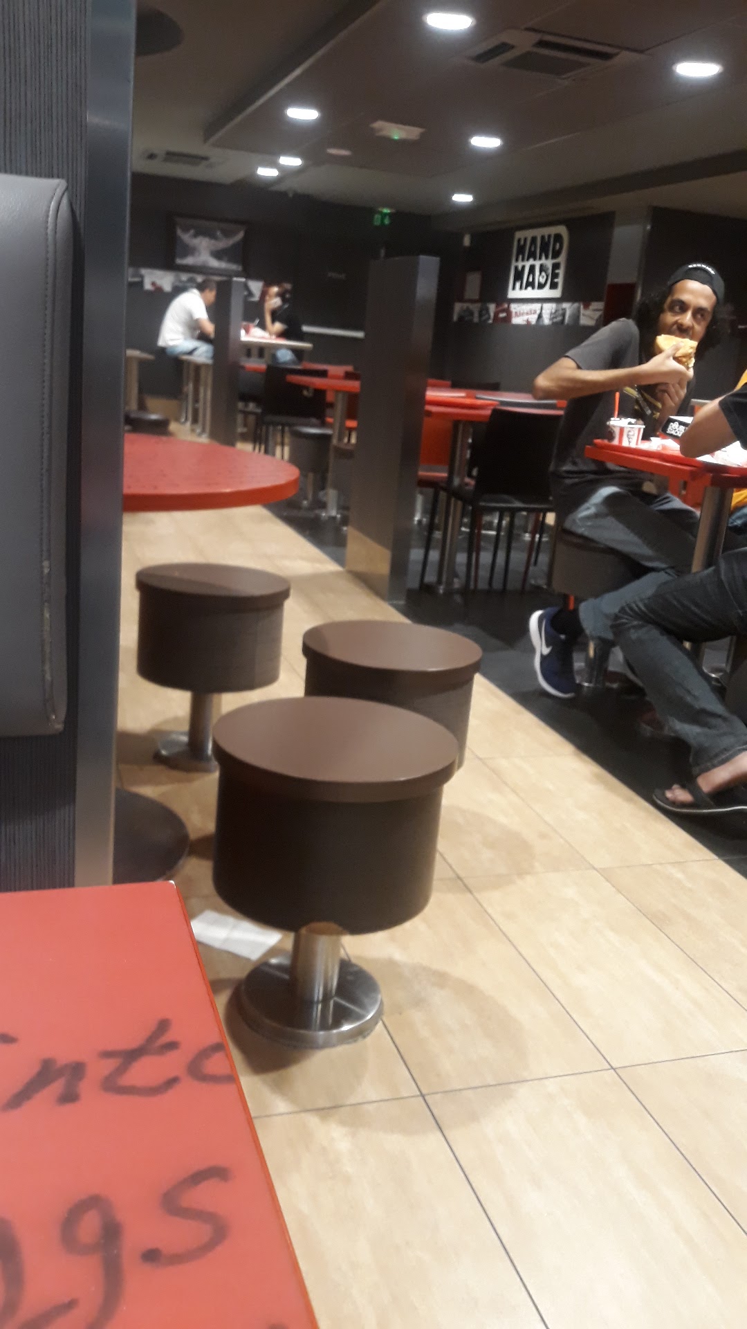 Trop de gens, pas assez de bornes, les serveurs sont lents, l’établissement est trop bruyant, les lumières sont agressives, les toilettes sont bloquées derrière un code (homme), la nourriture est immonde (ne devrait être donner à aucun être humain). Tout ceci est inadmissible pour de telle prix qui dépasse parfois la vingtaine pour un vieux burger