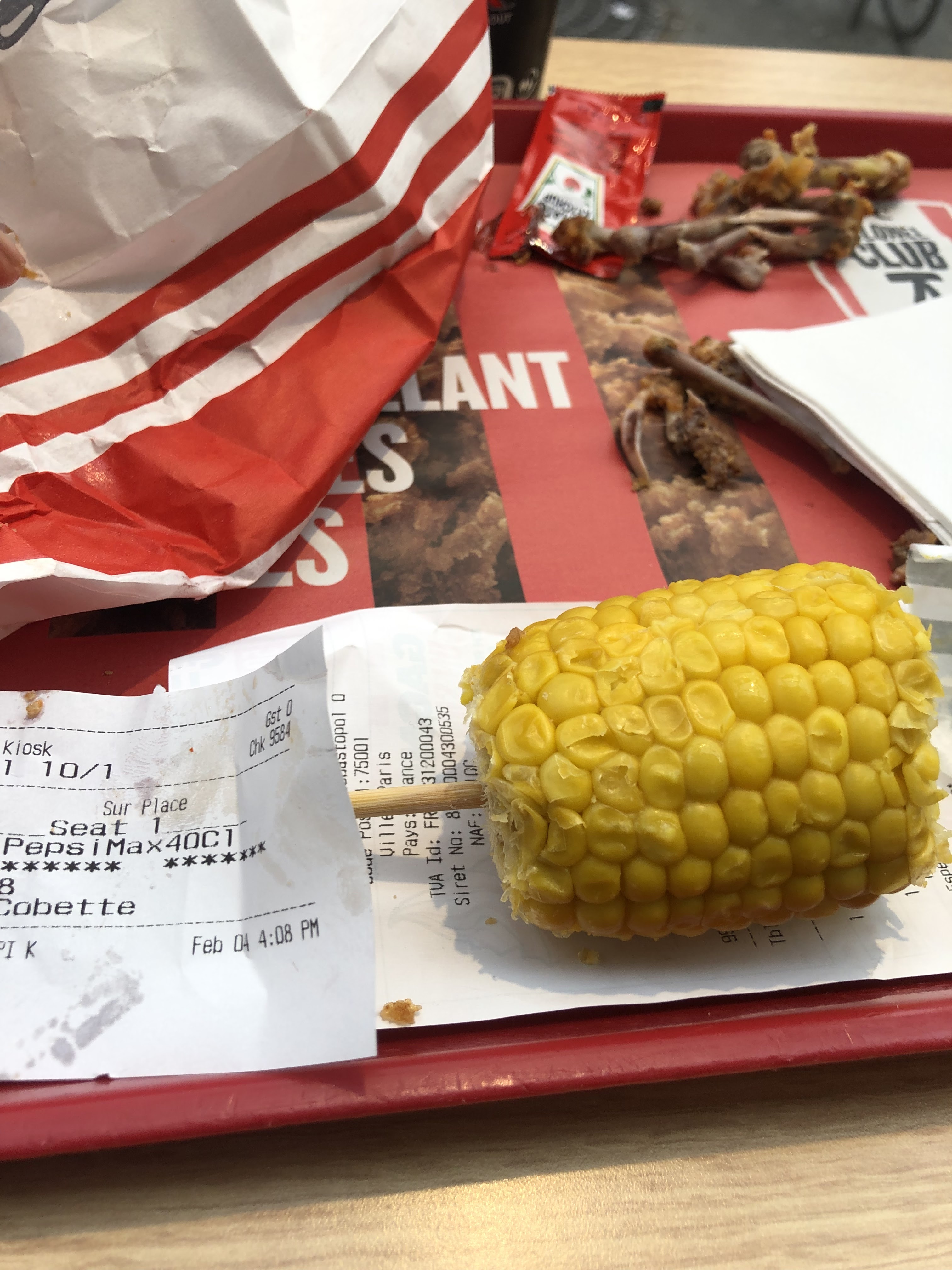 Je viens de repasser pour KFC mais c’est pas tres bon comme avant. The wing est petite. Le mais nest pas sensation de beurre.