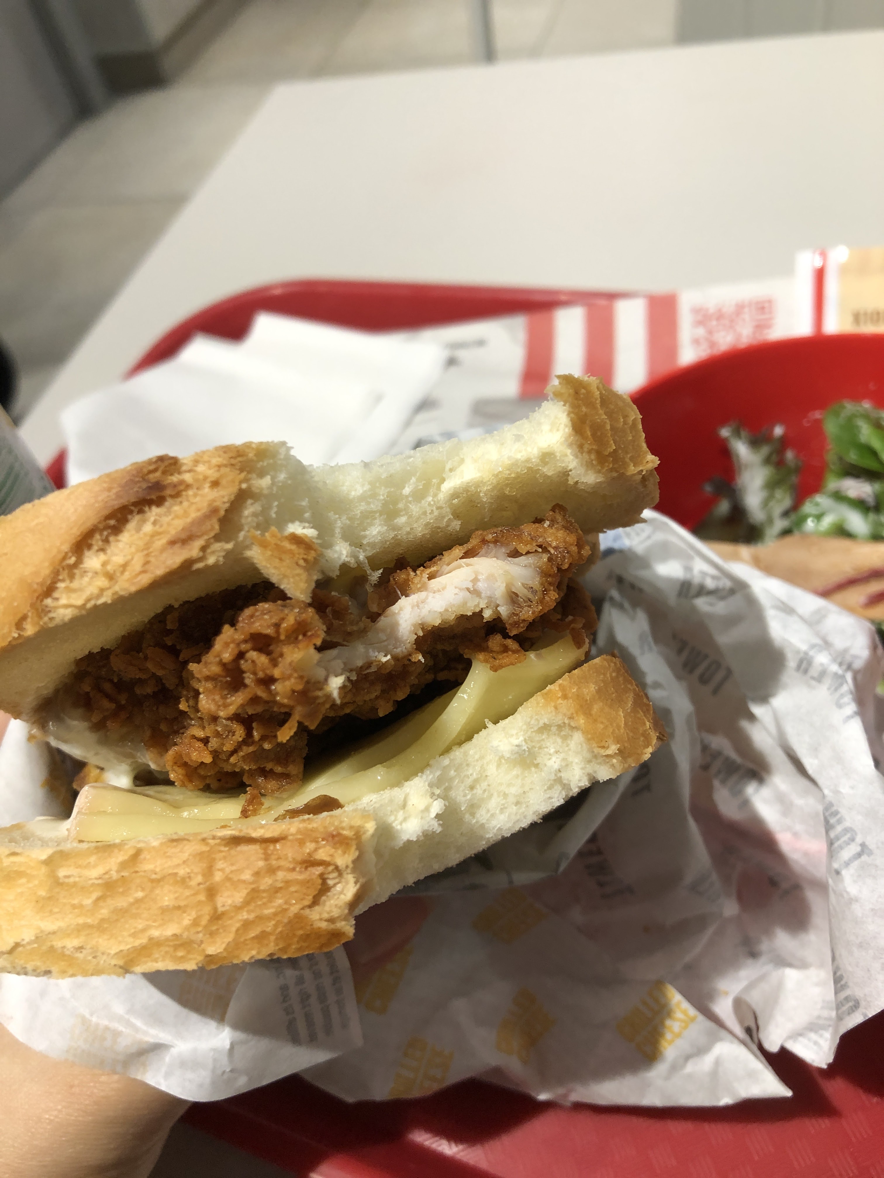 Désastreux la boisson, le burger, les oignons rings, ça m’a donné mal au ventre. Surtout les oignons rings, que j’ai pas réussi à finir alors que je gaspille jamais de la nourriture, j’ai déjà testé des oignons rings dans d’autres KFC mais là l’horreur. Et je parle même pas des employés mal polis et hautain…