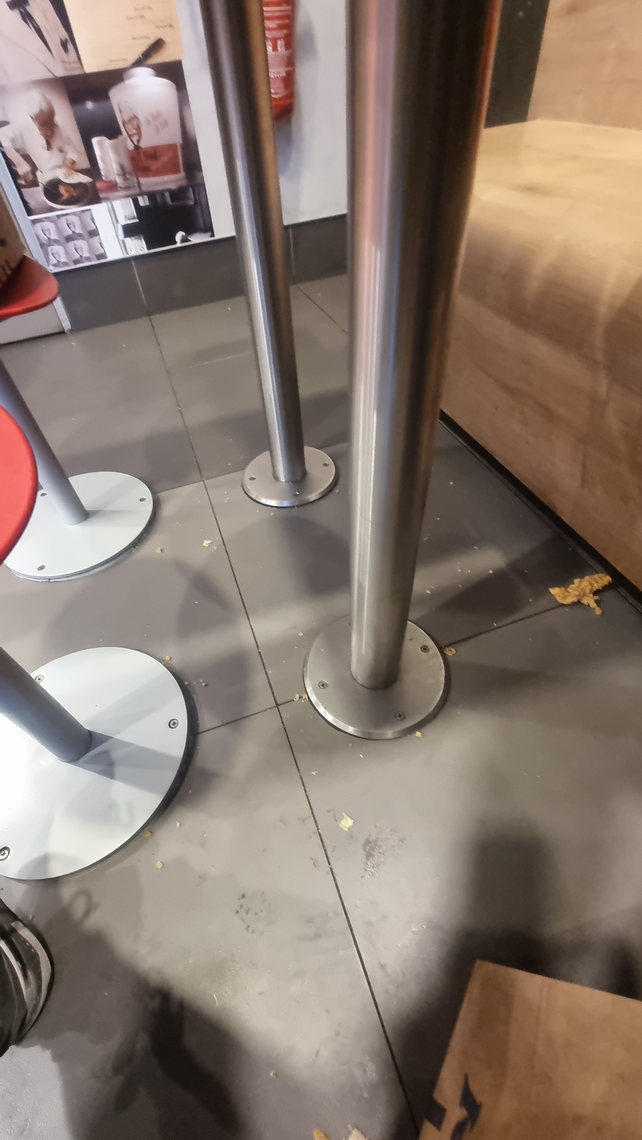 Toutes les tables étaient sales, les plateaux étaient pleins partout et personne n'a été nettoyé pendant les 45 minutes que j'ai passées là-bas. Frites froides, toilettes sales avec excréments dans et hors des toilettes, pas de papier toilette. Positif : le personnel a été rapide, la vue au deuxième étage est agréable si vous aimez regarder les gens.