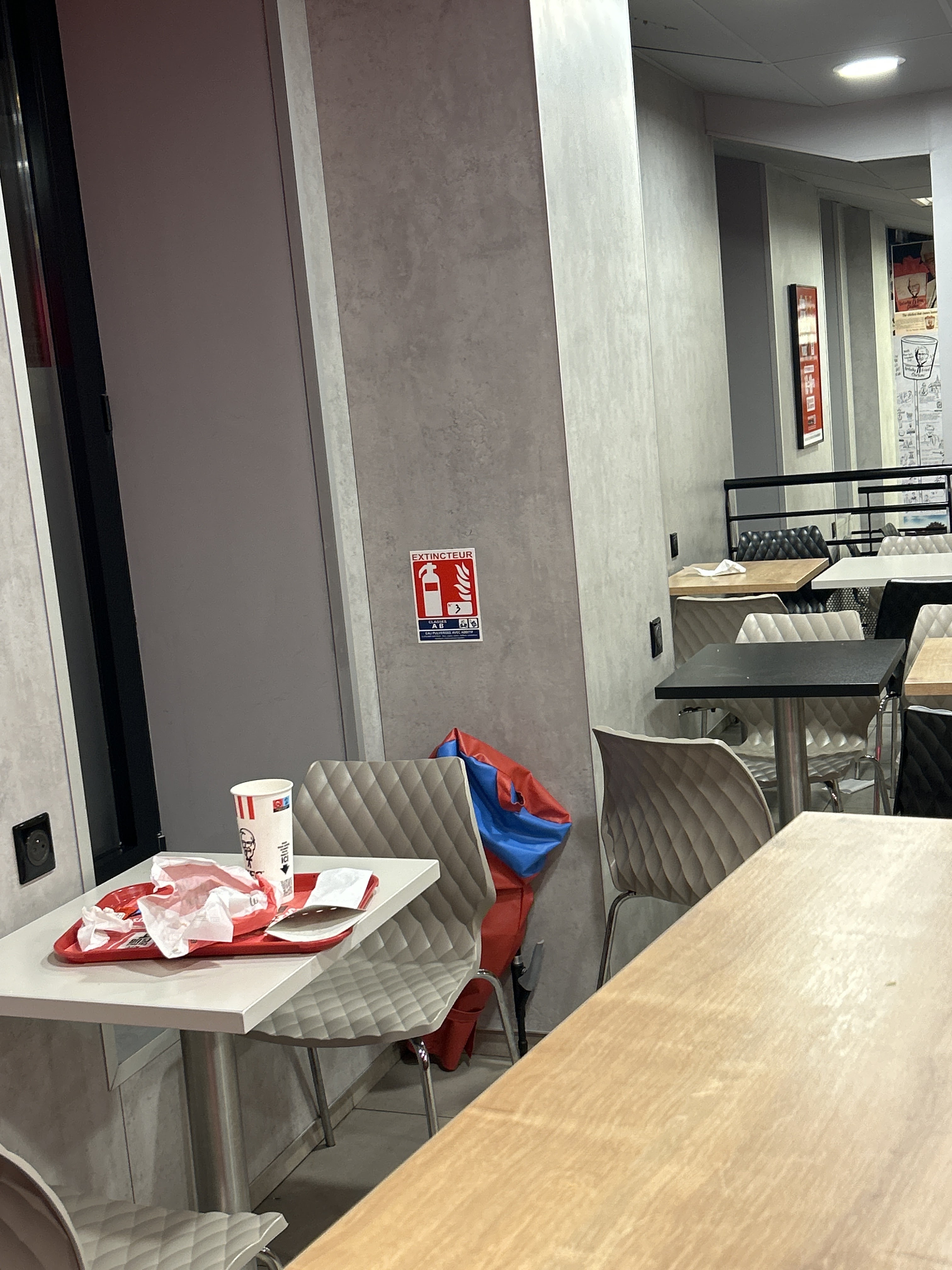 Nourriture froide, vous prenez le service à table et personne ne s'en soucie... vous avez dû choisir nos plats froids au bout de 15 minutes, vous demandez quelque chose aux travailleurs, ils ne prennent même pas la peine de répondre ni en anglais, ni en français... aussi l'endroit est sale et plein de déchets non nettoyés. j'ai été chez KFC dans 12 pays différents et celui-ci en particulier était le pire