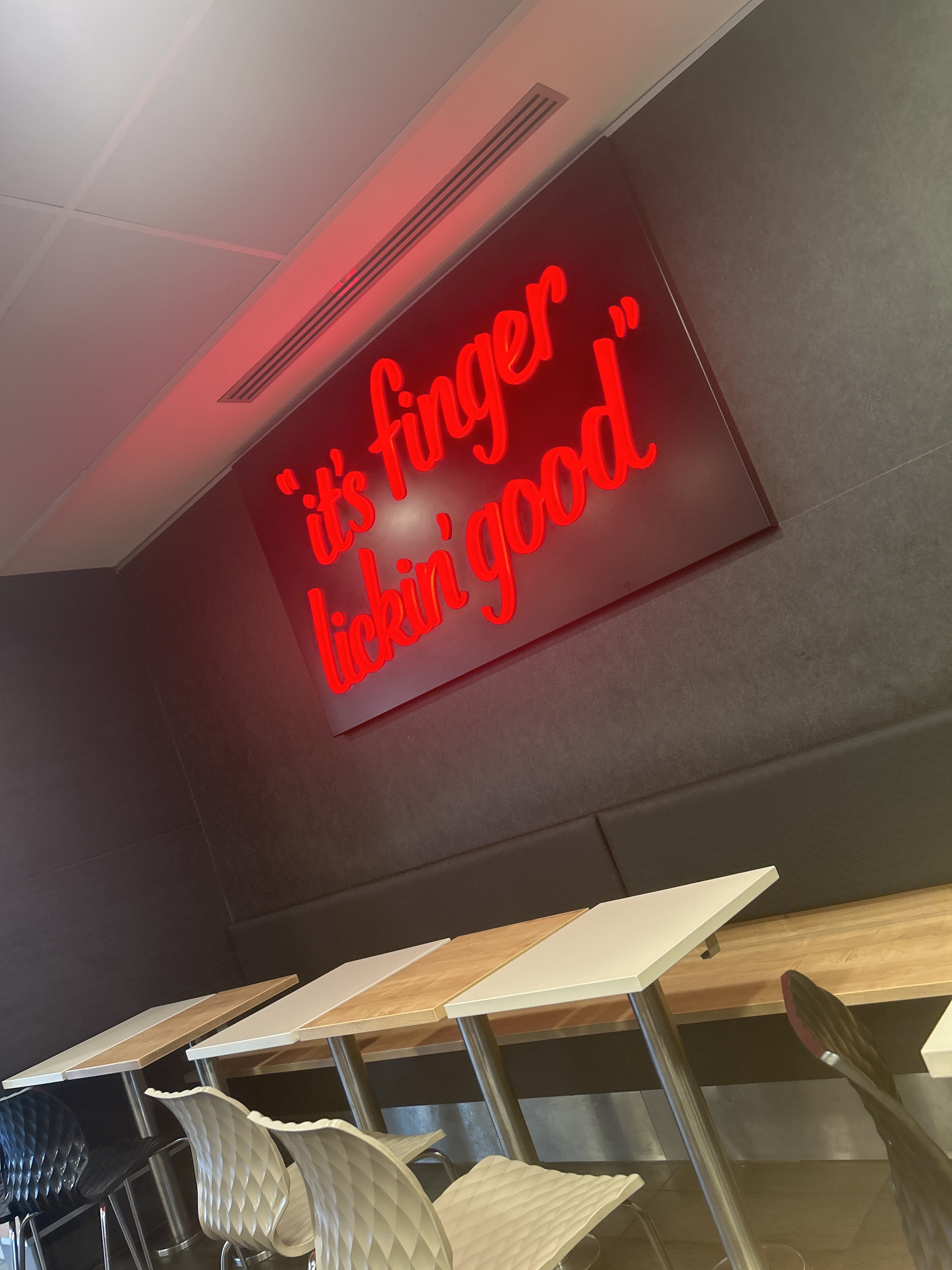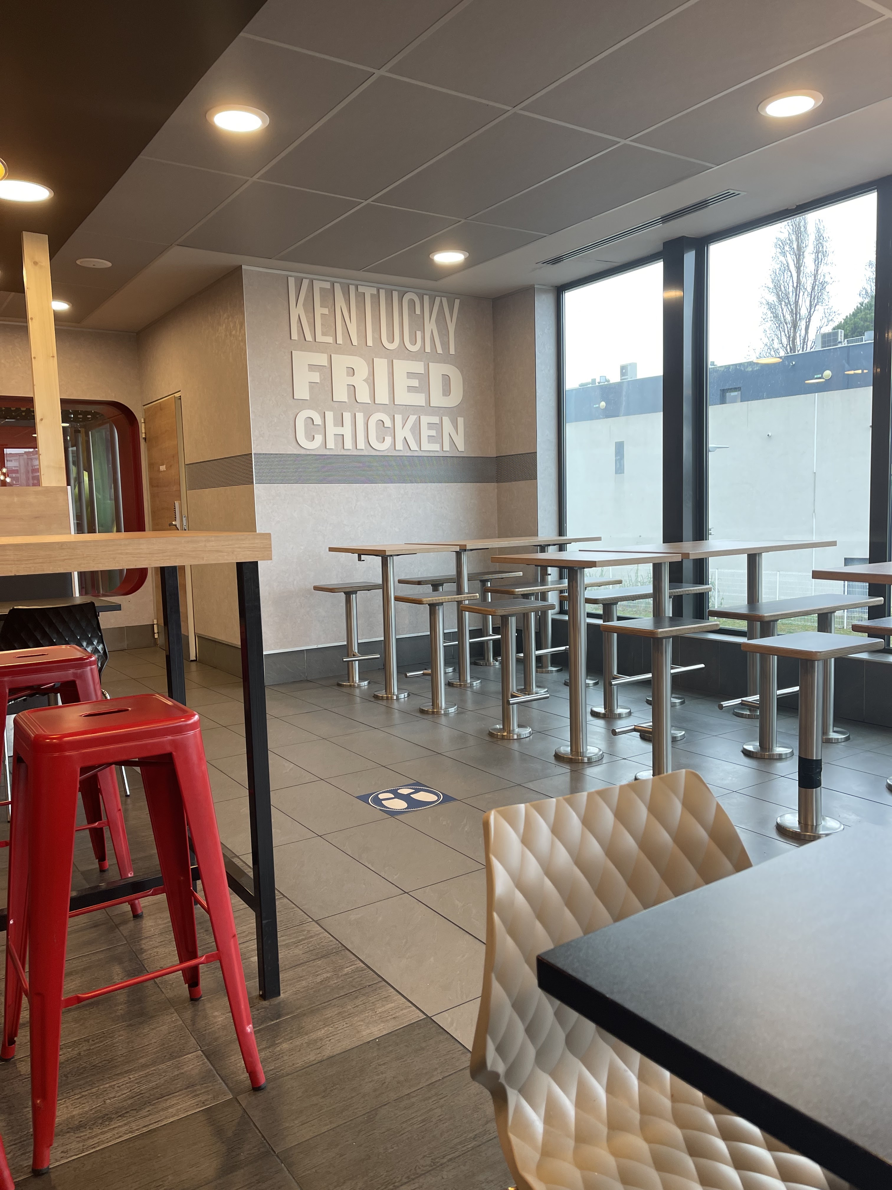 J'aime la nourriture de la chaîne KFC mais le restaurant est triste... il n'y a pas d'ambiance, de moins en moins de contacts humains ... De plus, l'autre soir il y faisait froid, j'ai du garder mon blouson pour manger. Je comprends que l'électricité coûte cher mais ceci étant... Bref déçue 😞