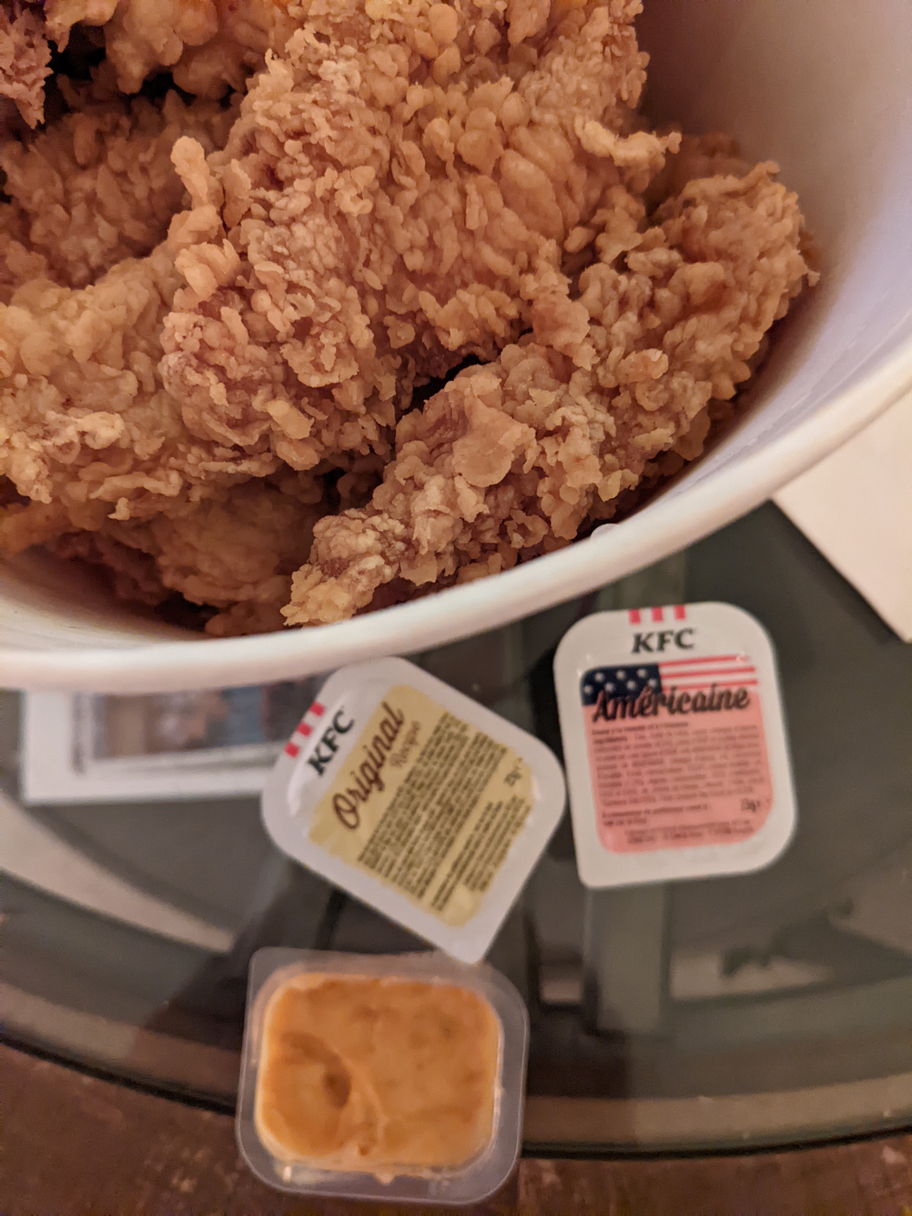 3 étoiles car effectivement, c’est du KFC et c’est bon mais aucune organisation pour le service, une attente de 20/30 pour le services à tables, les clients qui s’impatientent … dommage