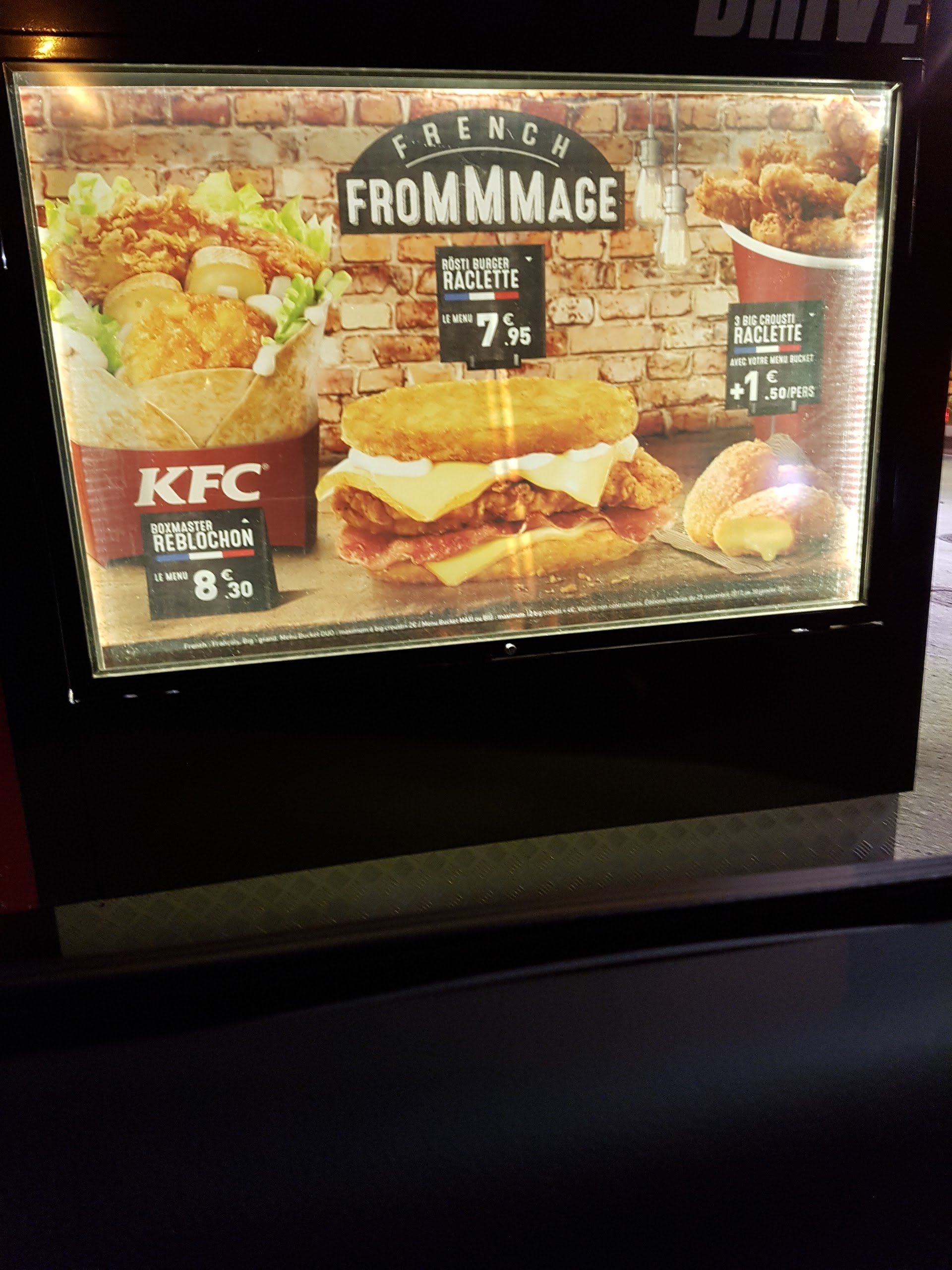 Je suis actuellement en train de manger un Tower Raclette Bacon. Le fromage à raclette a été mis directement dessus il est froid avec le reste des ingrédients. Tellement déçue car franchement j’adore KFC mais là j’y retournerai plus jamais ! Dépenser 40€ dans un repas qui n’en vaux même pas la moitié ! Je préfère largement aller chez Quick même si c’est pas terrible ça sera largement meilleur !