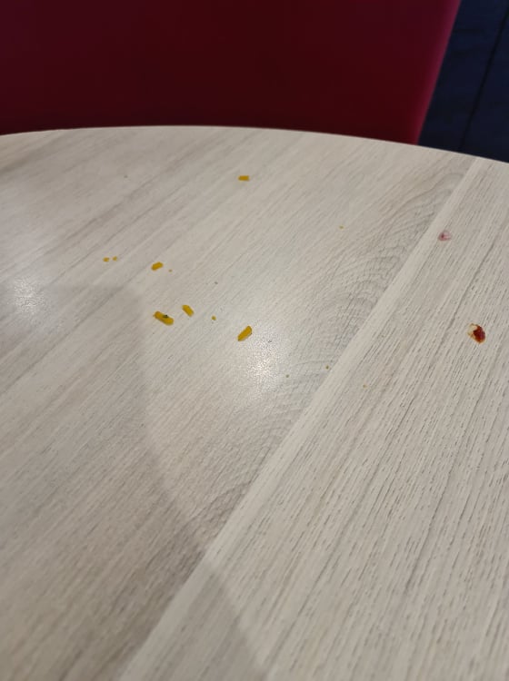 Dégoûtée.. service médiocre avec oublie de menus.. Et voici le pire…… je ne sais pas si ce sont des crottes ou un manque de propreté de vos machines…