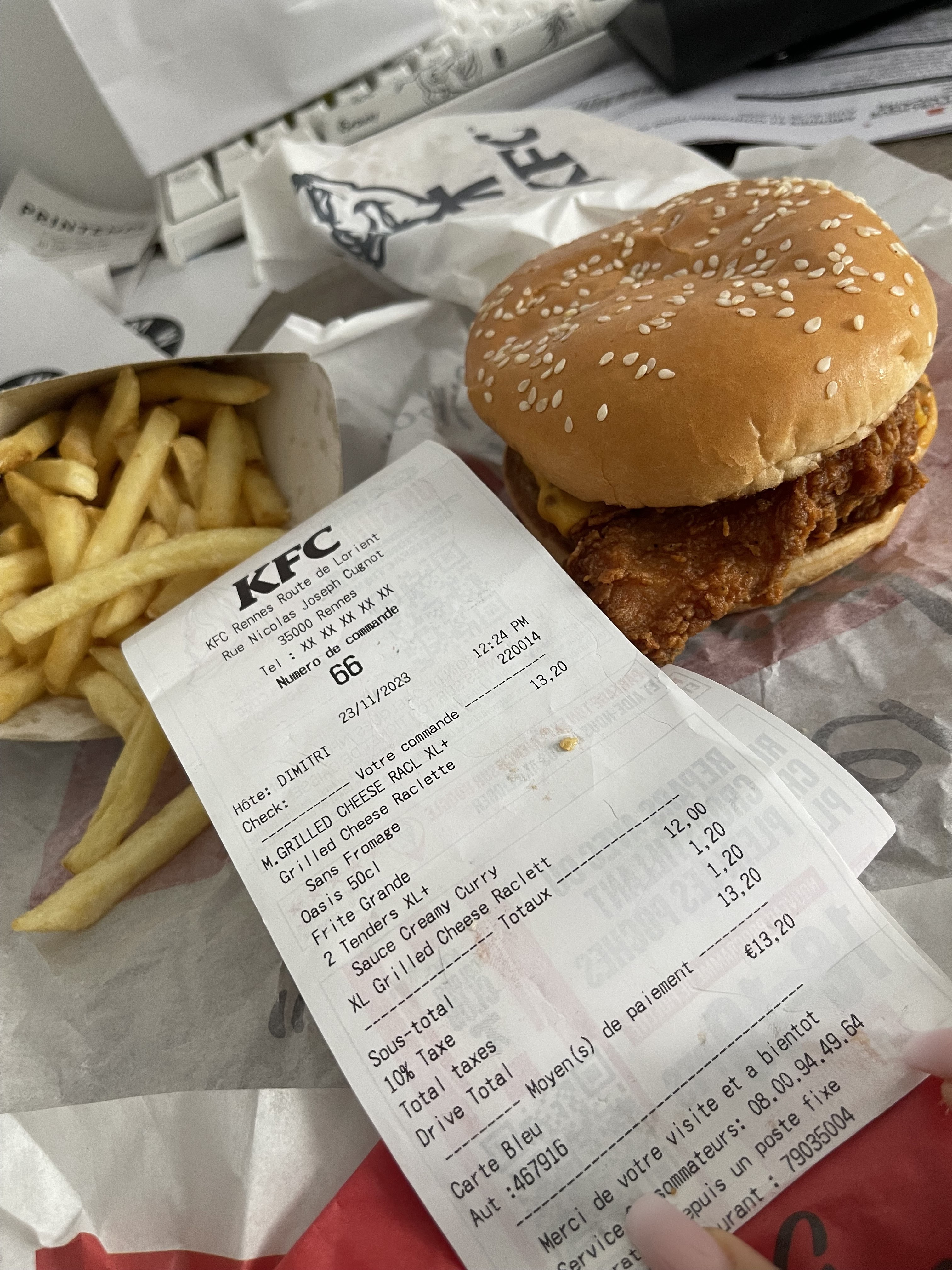 De passage à renne je me suis arrêter à KFC pour manger et je n’ai pas été déçu c’est très bon KFC et le menu enfant est trop petit pour les enfants de 10 ans